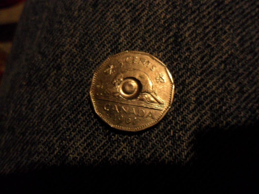 heres two coins the 5 cent piece im unsure of the mark but i have seen it very similar before. looks like a hard print or drilling mark but unsure. if its a mint error please let me know .thanks