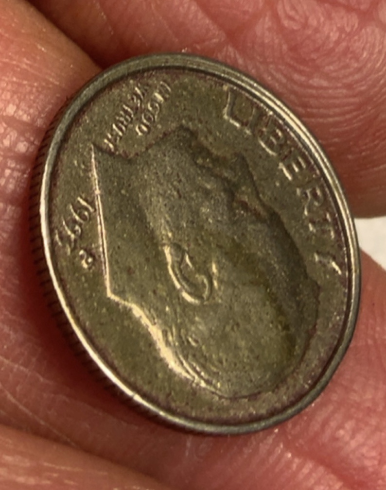 I apologize for the photos. Sorry but these were the best I could accomplish. Just a couple of coins that caught my eye with a minor “anomaly” (or not) each. The first is a dime with a protruding rim on the obverse and a normal rim on the reverse. I remember reading about rims that extend outward but I can’t find the post to determine if it required both sides to be worth holding onto or if it needed to be more pronounced than this. To me the photos don’t really show the rim very well but hopefully you will get the idea. The second is a penny where it appears Lincoln has something running out of the corner of his mouth. Probably PMD but I like the appearance and so am sharing. Peace! Love! And perfect coins.