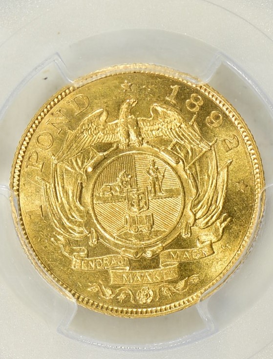 Well I just stumbled upon these two as the wife is away and I've got sooooo much spare time on my hands Looking at recent values achieved, I think I did pretty good at between 20-35% less than prices achieved at most recent sales. What do all you guys think??!! Australia 1884M St. George Sovereign MS62. An MS63 sold way back in 2011 at HA for $1,380. I paid $750 South Africa 1892 Pond 'Double Shaft' MS62. Both coins are not easy to find and very scarce in MS grade.