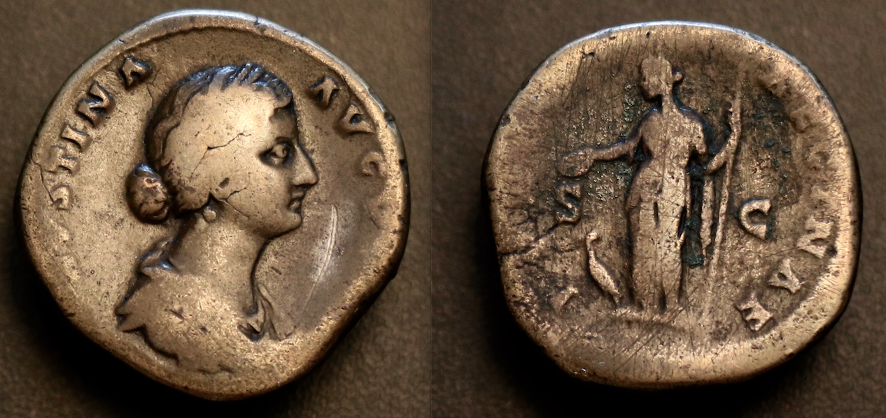 Here are my humble sestertii of this imperial couple. The Faustina II is a coin I don't ever plan to part with, but her husband is somewhat lackluster...