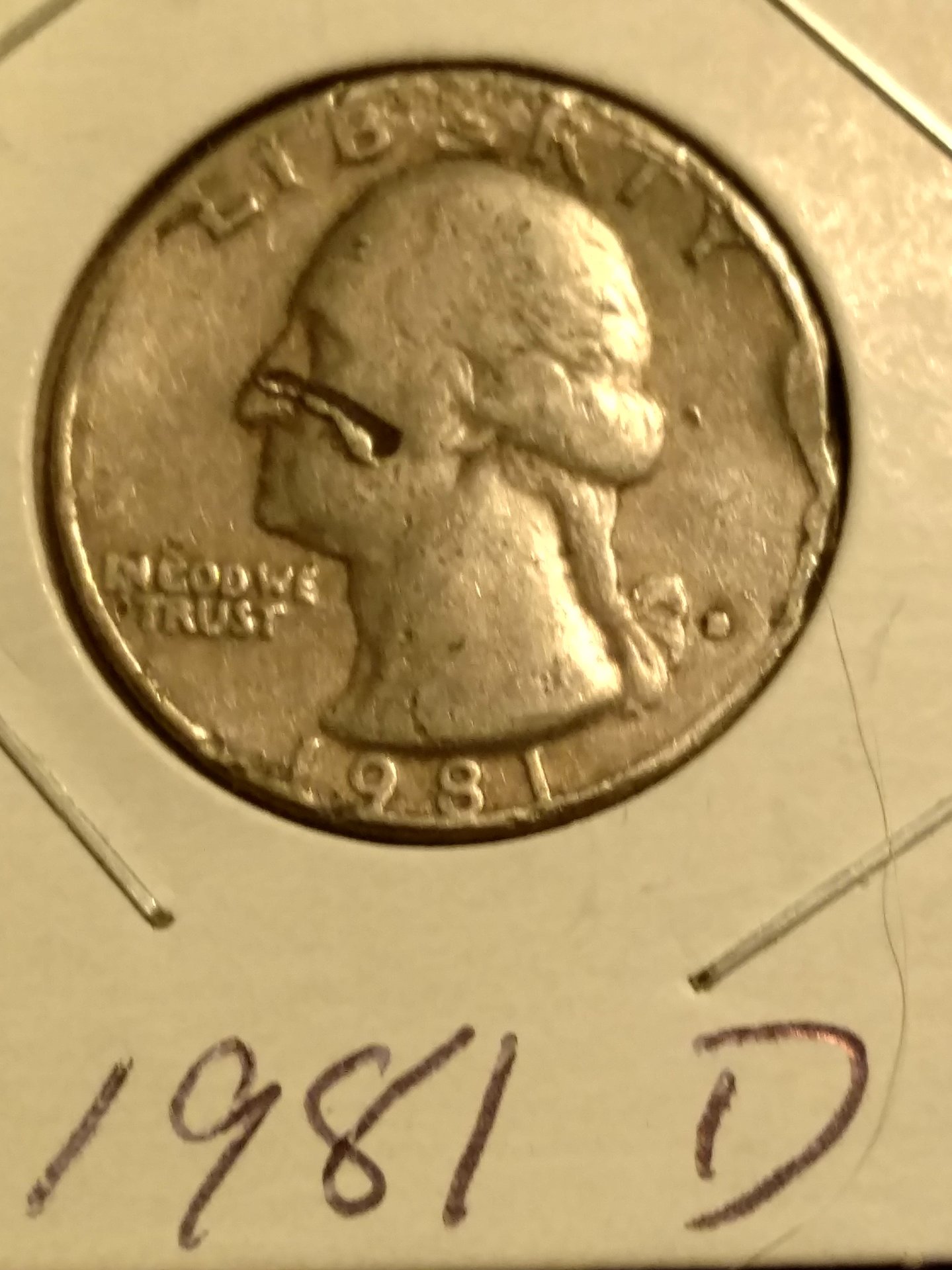Recently found this penny and quarter - really am not sure what to think. I can make out 1982 on the penny and it weighs in at 3 grams so I assume it is copper but appears to be rusting? Can't be sure if it has a mint mark or not. The reverse is rotated about 20 degrees. The quarter I just can not ascertain myself whether it is mint damage or post-mint damage. Any info or thoughts would be appreciated!