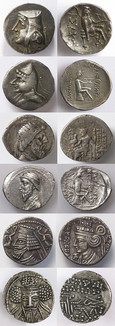 Here are some of my favorite Parthian Mithradates II drachms (123-88 BCE). His beard and schnoz (nose) are always eye-catchers.