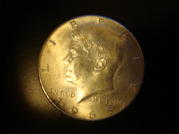 Would need a better picture of the second 65 (obverse and reverse) to say anything above silver content plus a little. The other coins are clearly circulated Kennedy's and valued in the range. 0.147 ounces of silver each coin.
