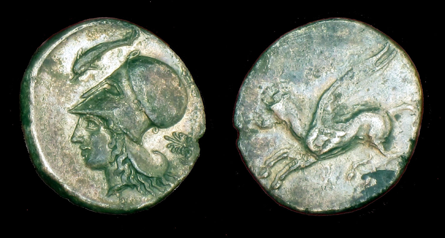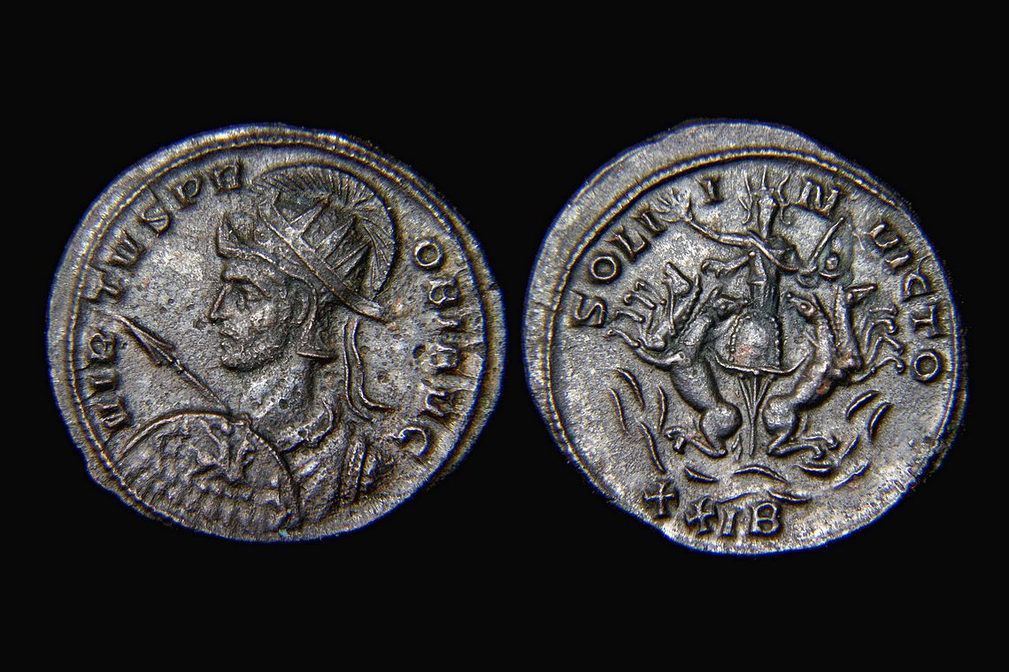 There are many horse coins among the ancients but one of the most 'different' is this four horse chariot facing and pulling the sun god Sol. Note the flames below their feet. There is also a small horse on the emperor's shield on the obverse. Roman Empire, Probus, 276-282 AD, Siscia mint