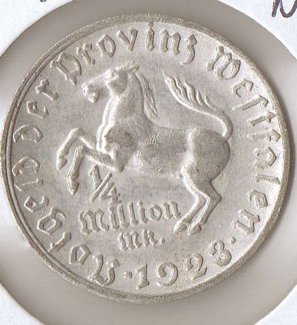 And here is a Colombian 10 pesos, Spanish 10 centavos and a Westfalen, Germany 1/4 million mark notgeld coin.
