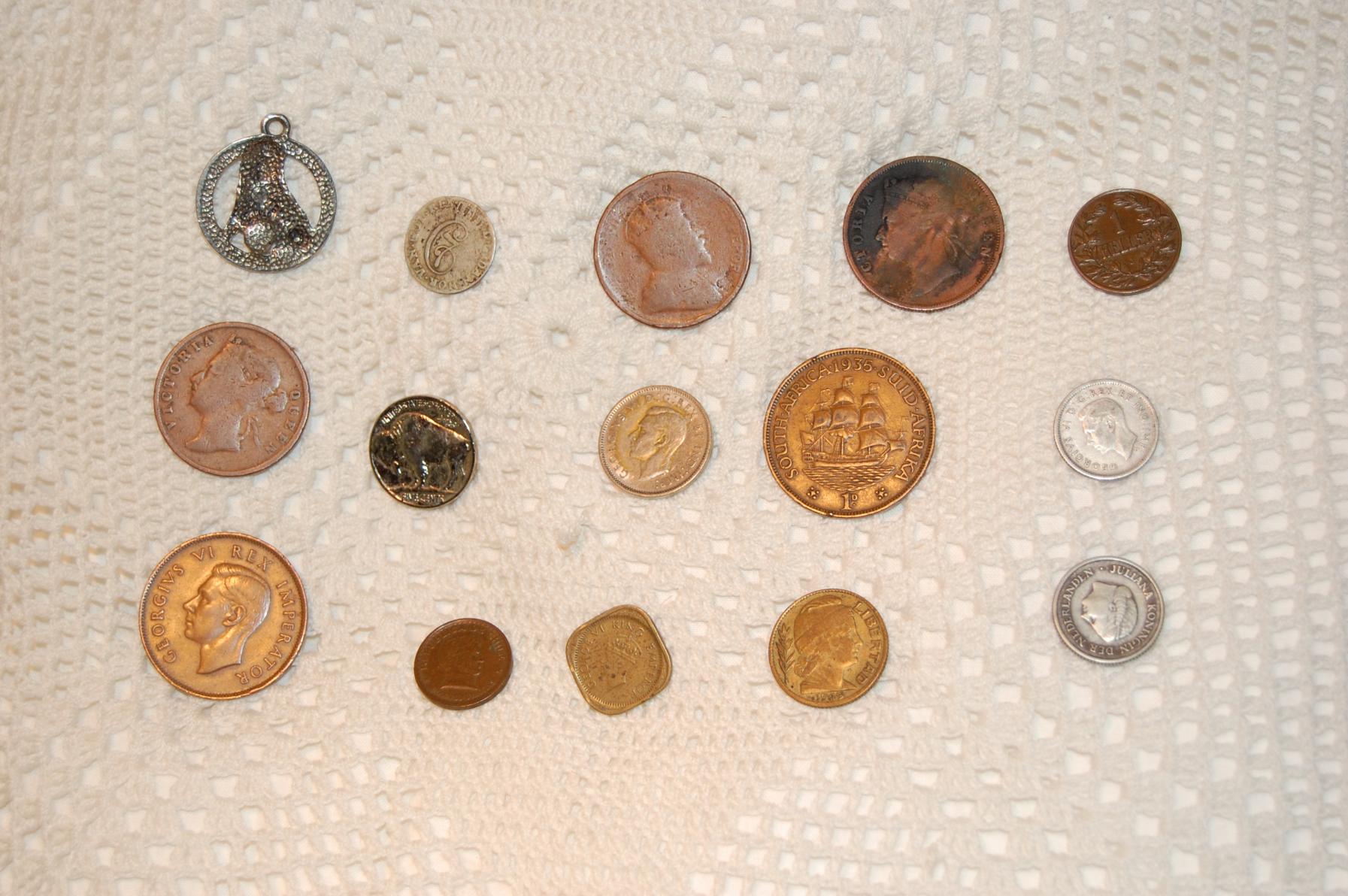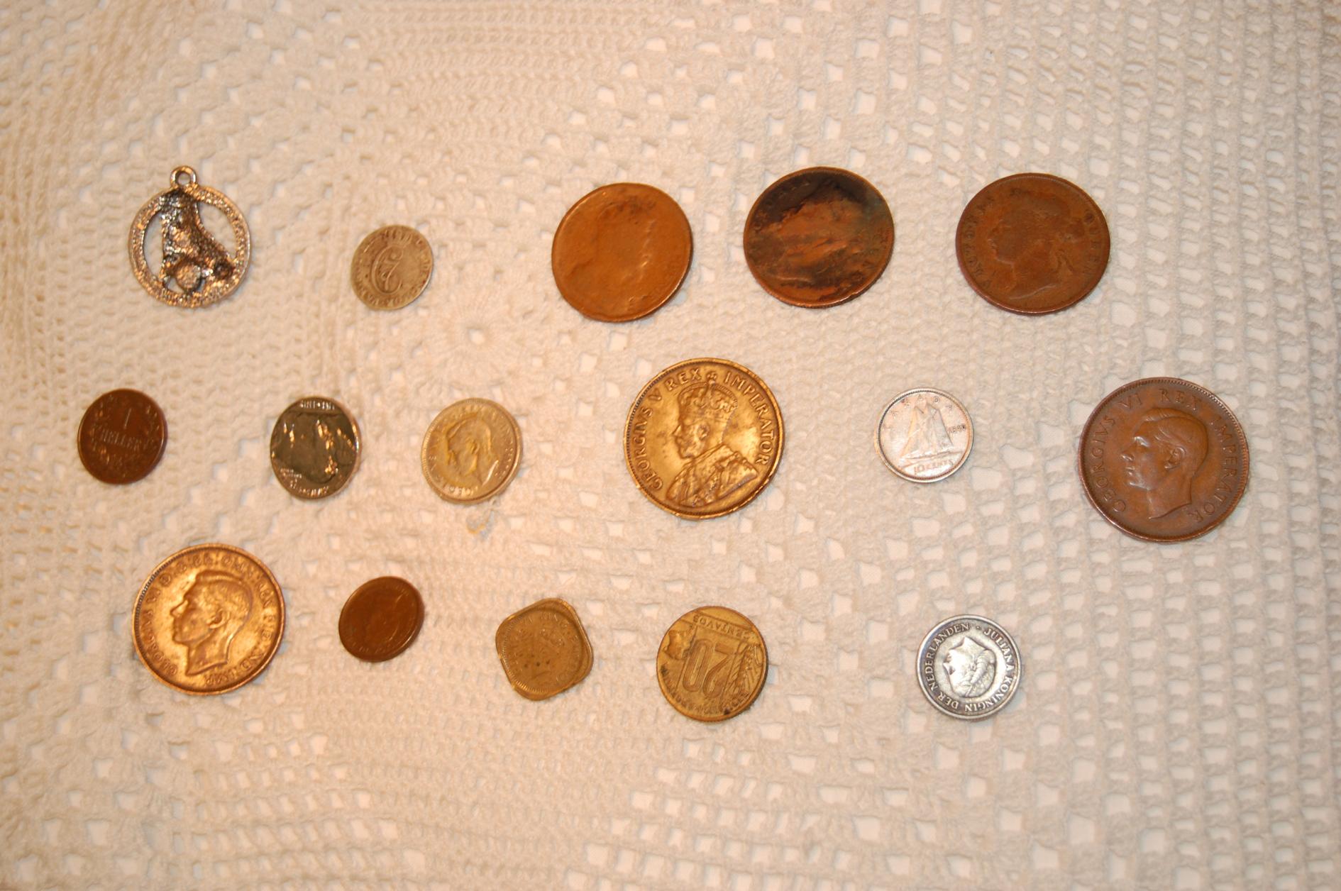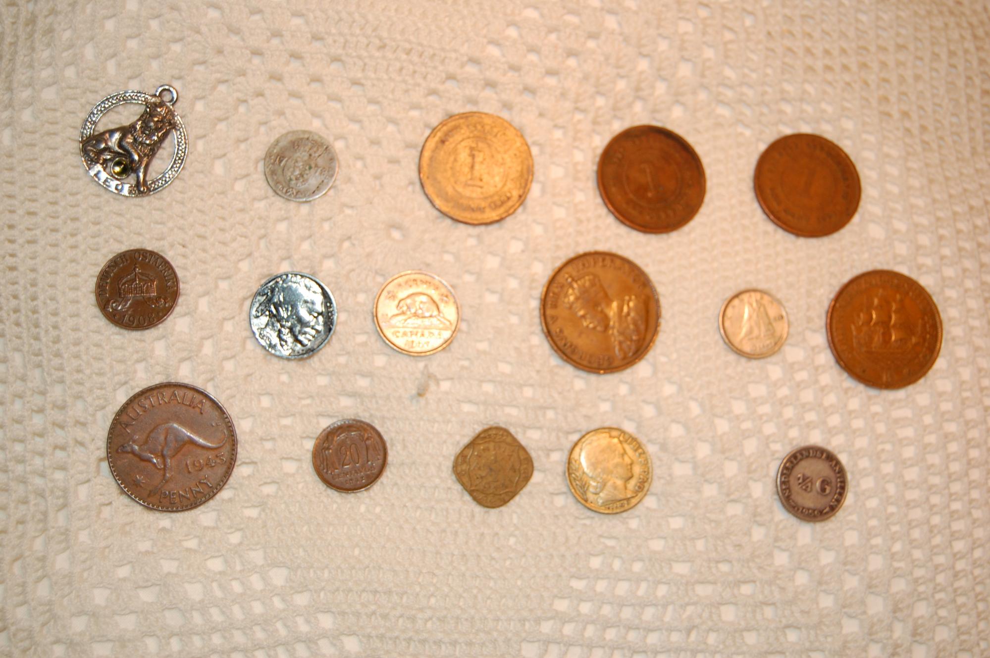 I have only got answers on one of the coins, tell me more about them the africa coin from 1942 is only 30 years too late for the periode when coins were paid 3mill$ from south africa. I have one from 1935 too! And may anybody recognice something on the amulet? pictures from the other side is easyer to see the amulet. thanks