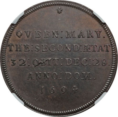 Here is a very poignant medal paying tribute to Queen Mary's death (from smallpox). Is the irregularity on the reverse caused by a die break? Thanks ahead of time, guy