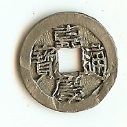 OH Well, I expected nothing from a junk box. Looking over the Chinese cash coins of 1700's and 1800's, I find several that look very similar in Design, so I guess the question as to whether its chinese or decoration is answered. It appears to be chinese language. However, none of the coins is an exact match, the problem being the bottom writing which I was unable to match to anything. And as you so aptly pointed out, having the reverse missing makes it a moot point. Anyway, its worthless whatever it is. Maybe someone was trying to make a counterfeit, although I believe the suggestion that perhaps it was attached to something is probably the right answer for the mess on the reverse which appears to be some sort of adhesive...Thanks for all your input...I'll just put it aside for awhile until I decide what to do with it......Regards, Bill