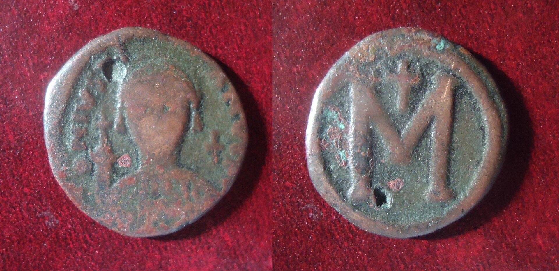 I have a side portrait Justinian more in the manner of Anastasius: As you can see it's a little light and pre-reform...I suppose Justinian I (527-565 A.D.) AE Follis, Constantinople Mint, 10 grams, 28mm Obverse: Diademed, Draped and Cuirassed Bust Right, DN IVSTINIANVS PP AVG Reverse: Large M, cross above, star to left and right, officina letter below Reference: SB 160, Dumbarton Oaks Collection 30.