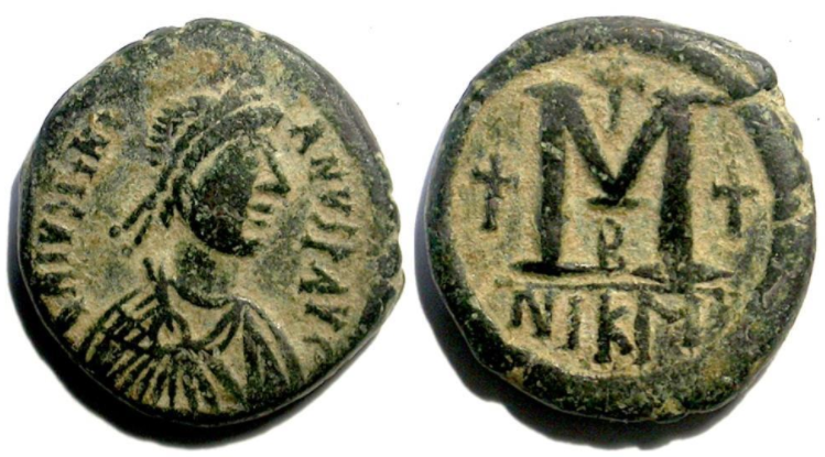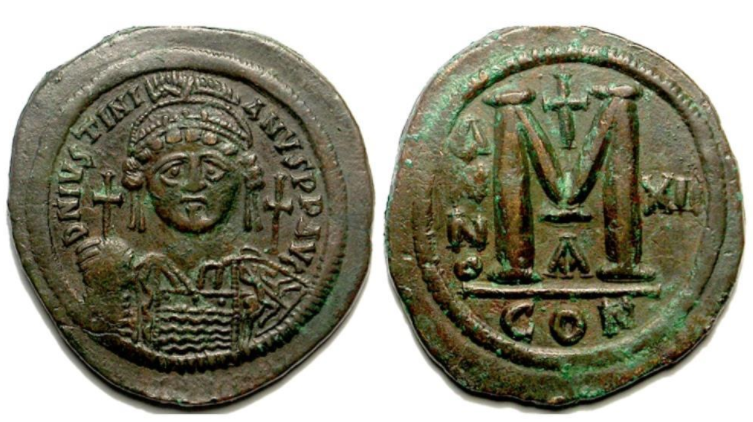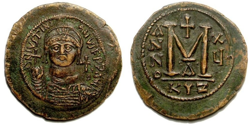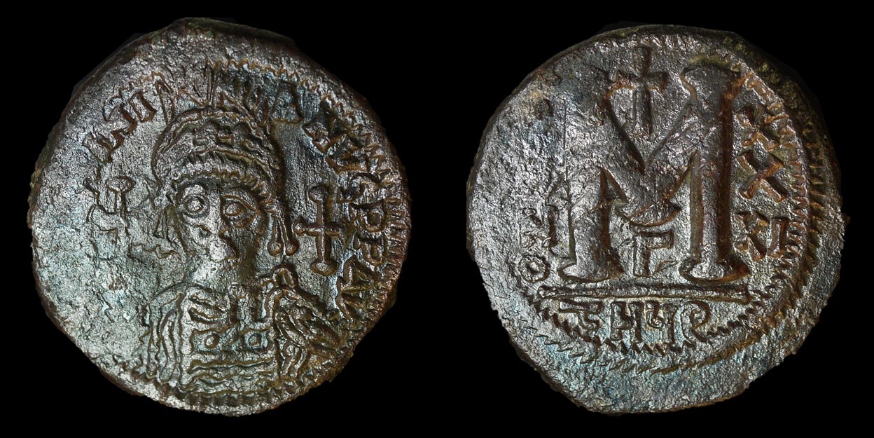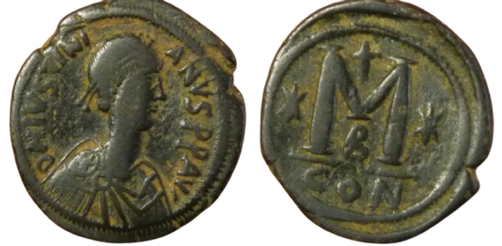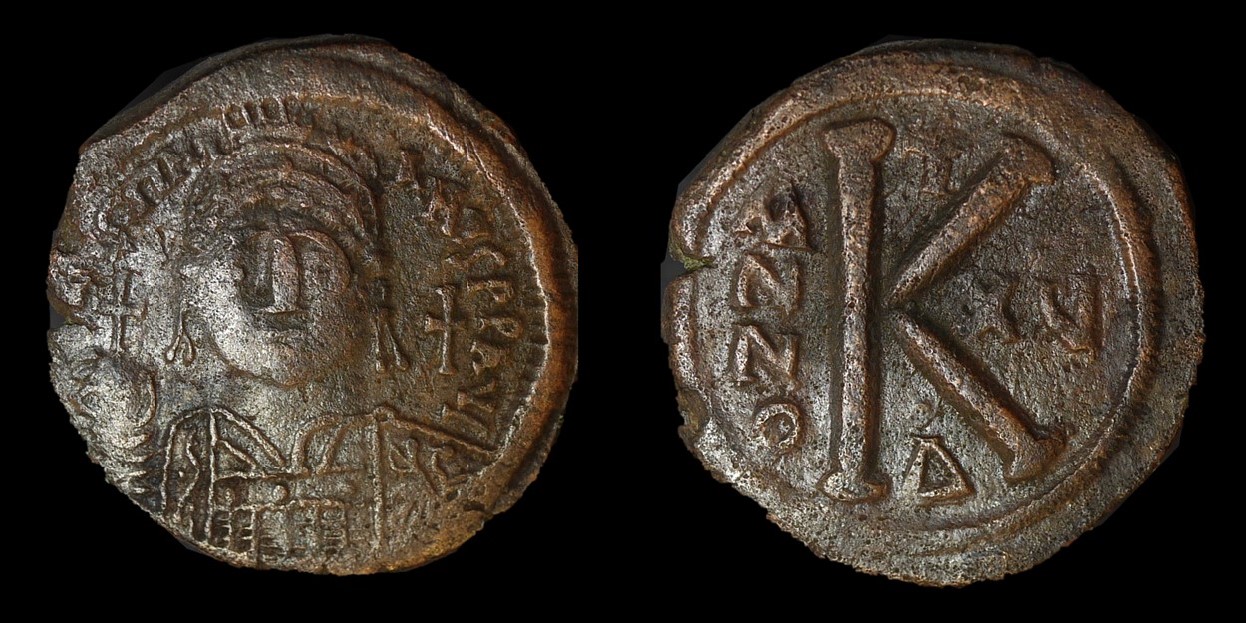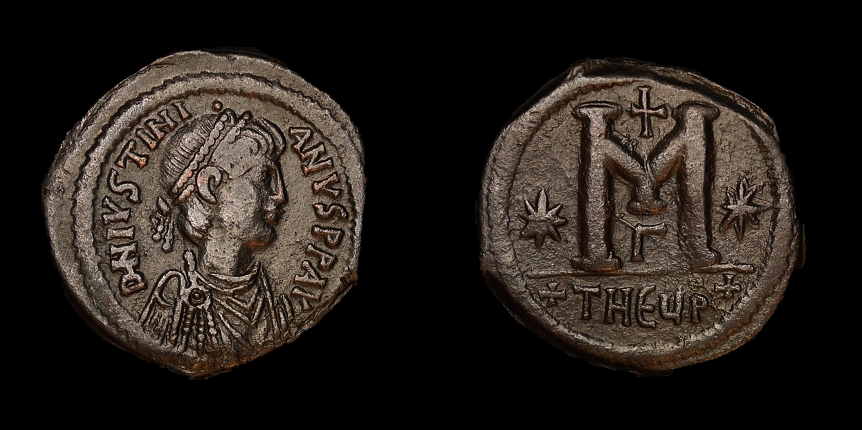 While these large bronze coins are usually quite crude, this one has a particularly nice style: DN JVSTINI - ANVS PPAVG / M between ANNO and XII, above cross, below A -- CON 539/540 Ex Heracles Numismatics 2008