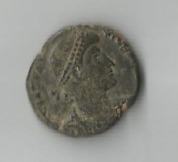 This early Nicomedia seems to show a buckler rather than a shield. Constantius II - AE2 Obv:- D N CONSTANTIVS P F AVG, pearl diademed, draped and cuirassed bust right Rev:- FEL TEMP REPARATIO, Helmeted soldier to left, shield on left arm, spearing falling horseman; shield on ground at right. Horseman wears a Phrygian cap and falls forward clutching horse's neck Minted in Nicomedia (* | _ // SMNA). A.D. 348-351 References:- RIC VIII Nicomedia 63 (Rated R). 5.89 gms. 22.76 mm. 0 degrees