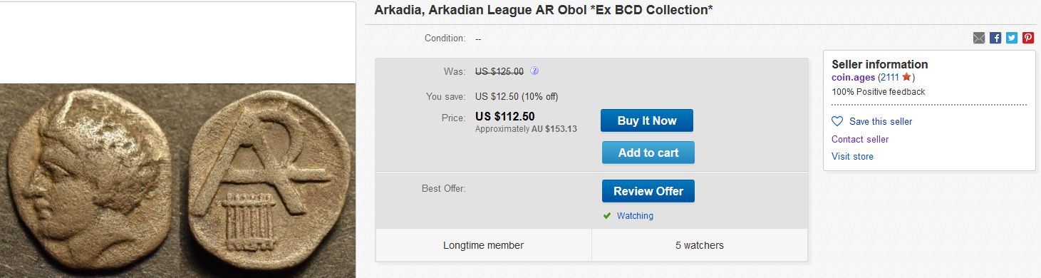 I know this is an old discussion, but I'm curious about that last coin you posted minted in Megalopolis under the Arkadian League. This same coin appears to be for sale on Ebay. Is it no longer in your collection?