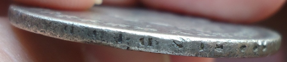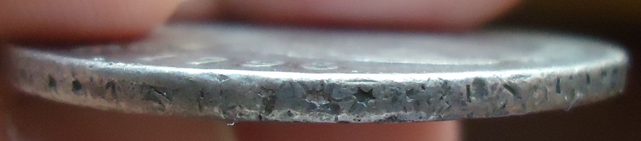 Thank you lordmarcovan - Here are a couple of edge shots - pretty chewed up, but there is some lettering there. Though I am no expert, the "softness" looks like some other ex-jewelry pieces I have. On the other hand, those counterfeiters are pretty good too!