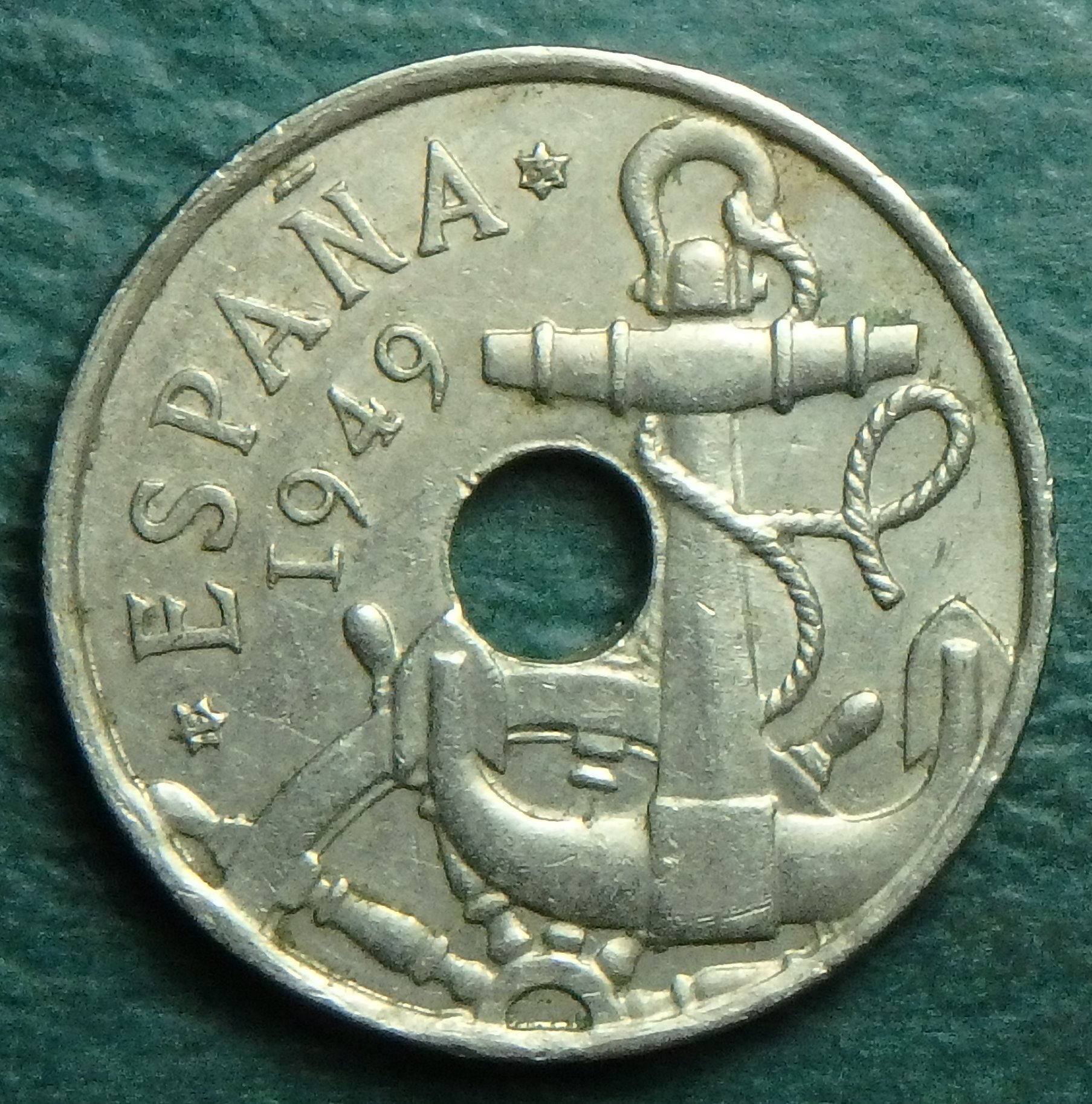 Just for grins, here is the one bold looking nautical theme Spanish coin I have. It is a 1962, look at the small stars.