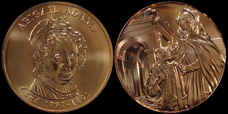 When the First Spouse medals came out, I thought I would collect them as a companion for the president Dollars. At that time they were cheap. The first few I think I paid about $3.50 each. Then the came out with an annual package of all four for $12.50. The first couple of years I waited until the 4 pack came out to but a little cheaper. I began to notice that people began collecting the annual packs and were being sold for a premium. Guess I should not have cut open mine and put them in an albulm. A while back I read an article about the Abigale Adams having a few released with the reverse of Louisa Adams. I knew I had the Abigale medal, but never got up to check. Today I was doing some house cleaning with my coin collection and remembered the article. When I checked the Medal , lo and behold, both Abigale and Louisa have the same reverse! WoW, I never find anything like that. Well, this long winded tale has to end somewhere. OK Guys, what is it worth? Saw on Ebay a couple being offered between $500-$750. Those were certified MS63 and MS64. Mine is just carefully plucked from the album and placed in an AirTite. Thoughts, good or bad. Thanks, Mike