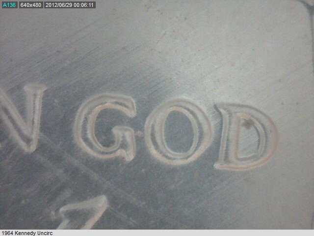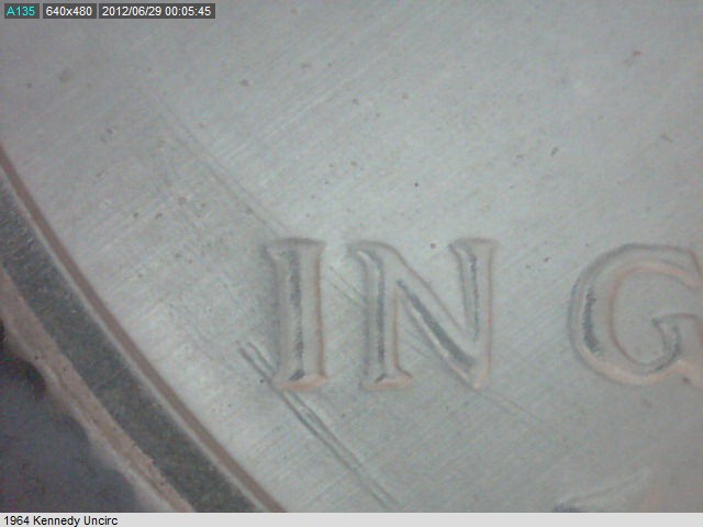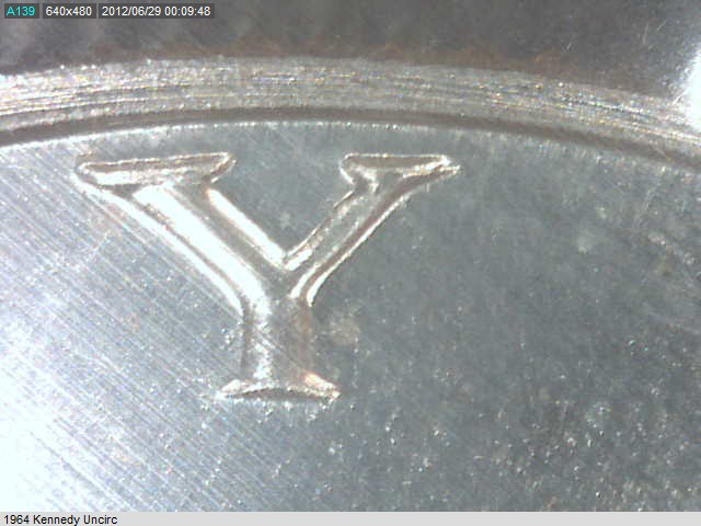 Here are a few more pics at ~45x. The first 4 were taken with my light diffuser, pics are probably worthless since it kills the shadows. Last pic is of the Y in Liberty with the diffuser off. Thanks for all the info, I emailed one of the CONECA guys.