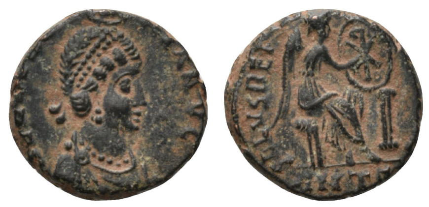 Just saw this Aelia Eudoxia on Ebay and bought it for a very reasonable EUR 19.50. AEL EVDOXIA AVG // SALVS REI PVBLICAE 15mm, 2.8 gm Aelia Eudoxia was the daughter of the Frankish general Bauto. She married Arcadius in 395. She bore him 7 children, before dying of a miscarriage in AD 404 at the age of 24.