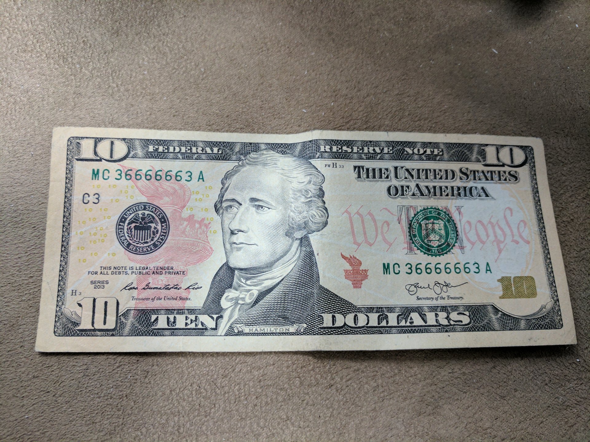 Another cool radar in the register today. 36666663... Rougher shape though. Also last week I managed to get a real nice crisp new radar fresh from the ATM in my store. I had been seeing all the fresh bills for weeks leading up slowly to the one I wanted and made sure to grab it when it got close enough.