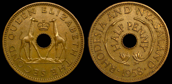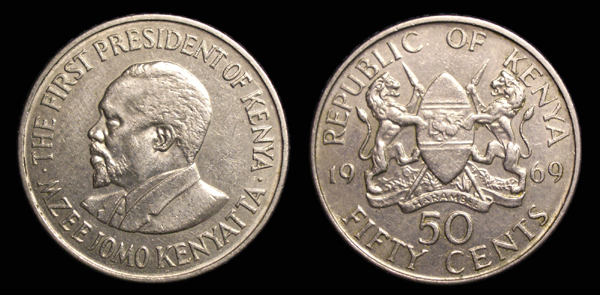 1/2 CENT COIN - SIERRA LEONE - SIR MILTON MARGAI (KM 16) Date: A.D. 1964 Obverse: Portrait head right - UNITY FREEDOM JUSTICE SIR MILTON MARGAI Reverse: Denomination between two Bonga shad fish - SIERRA LEONE HALF CENT 1964 1oz KRUGERRAND - SOUTH AFRICA (KM 73) Date: A.D. 1984 Obverse: Portrait bust left of Paul Kruger - SUID-AFRIKA / SOUTH AFRICA - Reverse: Springbok antelope - KRUGERRAND 1984 FYNGOUD 1OZ FINE GOLD CLS Engraver Obv: From original design of Otto Schultz by Tommy Sasseen Engraver Rev: Coert Steynberg HALF PENNY COIN - RHODESIA AND NYASALAND - GIRAFFES (KM 1) Date: 1958 Obverse: Giraffes standing facing each other with crown in between - THE SECOND QUEEN ELIZABETH Reverse: Sprigs, Date, Denomination and Country Name - Half Penny / 1958 / Rhodesia and Nyasaland Engraver: Bernard Ralph Sindall ONE PENNY COIN - RHODESIA AND NYASALAND - ELEPHANTS (KM 2) Date: 1957 Obverse: Elephants standing facing each other with crown in between - THE SECOND QUEEN ELIZABETH Reverse: Sprigs, Date, Denomination and Country Name - One Penny / 1957 / Rhodesia and Nyasaland Engraver: Bernard Ralph Sindall 50 CENT COIN - KENYA - PRESIDENT (MZEE) JOMO KENYATTA (KM 13) Date: A.D. 1969 Obverse: Portrait head left - THE FIRST PRESIDENT OF KENYA - MZEE JOMO KENYATA Reverse: Coat of Arms of Kenya: Shield and crossed speers with lions to each side - REPUBLIC OF KENYA 50 CENTS 1969 Engraver: Norman Sillman 10 MAKUTA COIN - ZAIRE (DRC) - DEPICTING MOBUTU SESE SEKO (KM 7) Date: A.D. 1975 Obverse: Portrait head forward right - BANQUE DU ZAIRE Reverse: Coat of arms of Zaire and the national motto - 1975 DIX 10 MAKUTA / JUSTICE PAIX TRAVAIL (Justice, Peace, Work) 5 CENT COIN - TANZANIA - JULIUS KAMBARAGE NYERERE (KM 1) Date: A.D. 1974 Obverse: Portrait head left - TANZANIA 1974 RAIS WA KWANZA Reverse: Sailfish jumping to left - SENTI TANO 5 (Tano is FIVE in Swahili) Engraver: Christopher Ironside I respect Julius Kambarage a great deal. He was a man who truly sought to help his country and he was honest. He recognized that he had failed to do what he had hoped to accomplish. On his voluntary retirement in 1985 he made a rare and frank admission 'lets face it, I failed'.