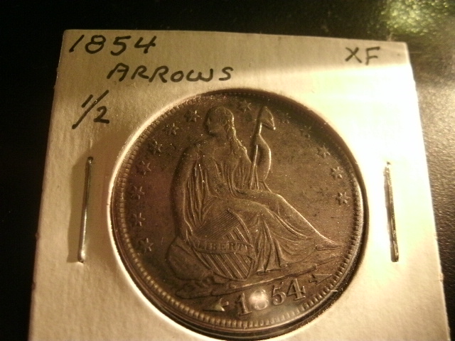 I'm surprised you only put a XF grade on the 1854 half dollar. I think it could be somewhere in the AU grade. It's got good detail on the obverse, especially the hair. Good detail on the facial features and nice detail on the cap and gown. The only weakness could be in Liberty and a few of the stars, but it's hard to tell what is actually happening there. The reverse has strong detail on the eagle's wings and forward edge plus good features on the beak and talons. The legends are up to speed for an AU consideration as well. What made you decide on XF?