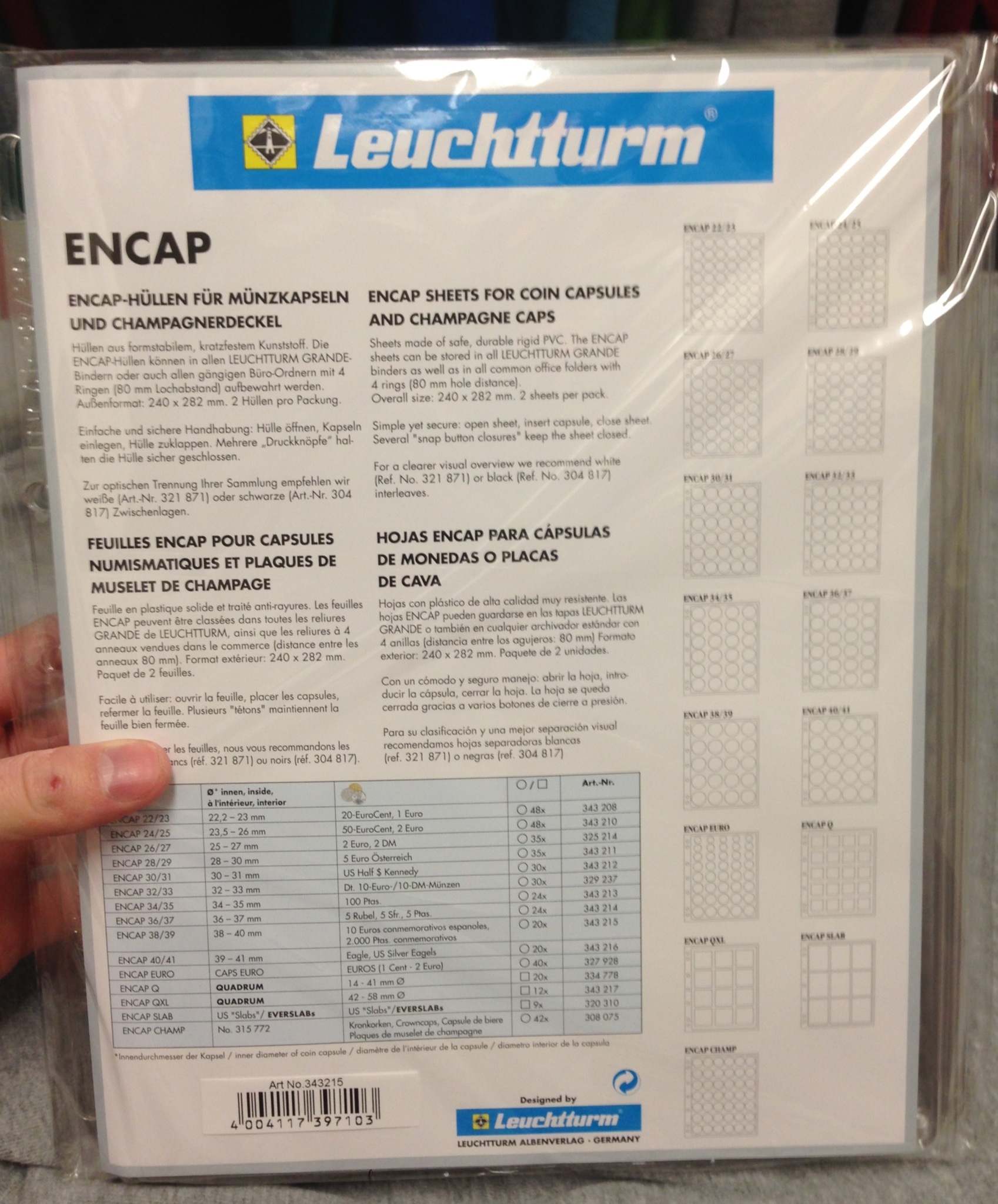 For anyone who is interested, I ordered some of the Lighthouse Encap pages to store my dollar size direct-fit airtites in. I typically use the 2x2 mylar supersafe pages, but I could not find any mylar 2.5x2.5 mylar pages for the larger airtites. I will only use these for my large airtites due to pricing. Also, since the pages for smaller airtites fit 40 capsules per page, there is not much room for labelling on those pages. I figured I would let everyone know my thoughts on these. Pros -Made from mylar -Thicker mylar than the supersafe pages, much more sturdy -Fit in normal 3 ring binders, supersafe pages are extra-wide and need a wider binder -Hold 20 capsules per page, and with smaller airtites they hold 40 per page Cons -Pretty pricey ~$7 for 2 pages -More difficult to label than other methods, although there is enough room on the dollar size pages to use a small label below the capsule. I use Avery return address labels. I can feed them to my printer and they come 80 to a page -the capsule tends to spin slightly in the page. This is easily remedied by placing a small piece of rubber between the edge of the holder and edge of the page. The extra foam from ring airtites work great. They can be placed so you will not see the wedge. Overall these will be great for my larger airtites. I do not have a whole lot of larger airtites so the cost will not be too bad for me to store them. If you have a lot of larger airtites, it could get pretty expensive. I would definitely recommend them.