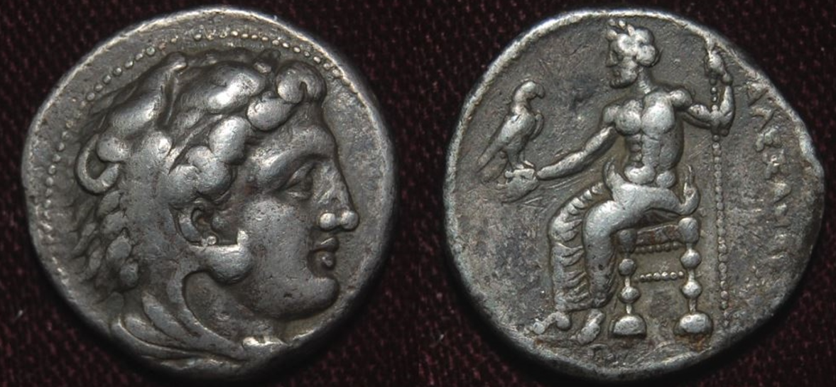 Here's a tetradrachm issued by Sabakes, a satrap of Darius III. He fell at the battle of Issus (November 333 BC).