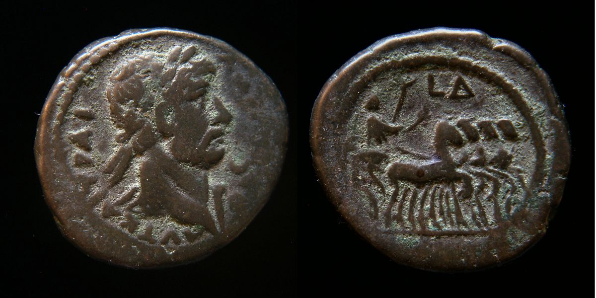 Made me look it up Bing. Thx Hadrian BI Tetradrachm of Alexandria, Egypt. Year 4, AD 119/20. Laureate and draped bust r. / Hadrian, laureate, togate and holding sceptre, driving quadriga r.; date above.