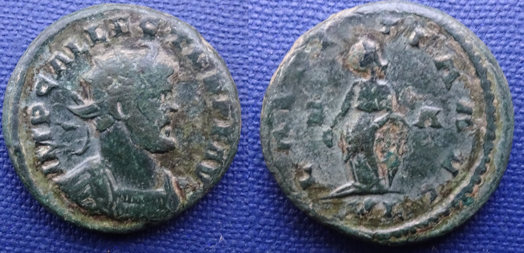 A couple of days ago I was doing my usual trawl through the many pages of coins on ebay, and came across an entry for a coin of Allectus, a person high on my wishlist, with a terrible photograph and very little interest. After pondering it for a while I decided to throw a bid in and see what happened, knowing that I could be getting a dud, but also aware that I could attribute the piece from the pictures and that it would be welcome in my collection even if it was as rough as it potentially could have been. I was successful with a comical total cost of £23.56, and sat back expecting a long wait. This afternoon it plopped through the letter box, and after a very quick once over to see how stubborn the soil deposits on it were, I couldn't resist snapping a quick picture. RIC 22 IMP C ALLECTVS PF AVG LAETITIA AVG - Laetitia, draped, standing left, holding wreath in right hand and anchor or baton in left hand S/A//ML - London 21mm, 4.46g Found by a detectorist in Sibley Hill, Wiltshire It has a beautiful thick green patina, a fair amount of honest wear, but overall it will be very attractive when it is properly cleaned up. Share your coins that were a gamble that paid off, your coins of Allectus, or any other usurpers you may have.