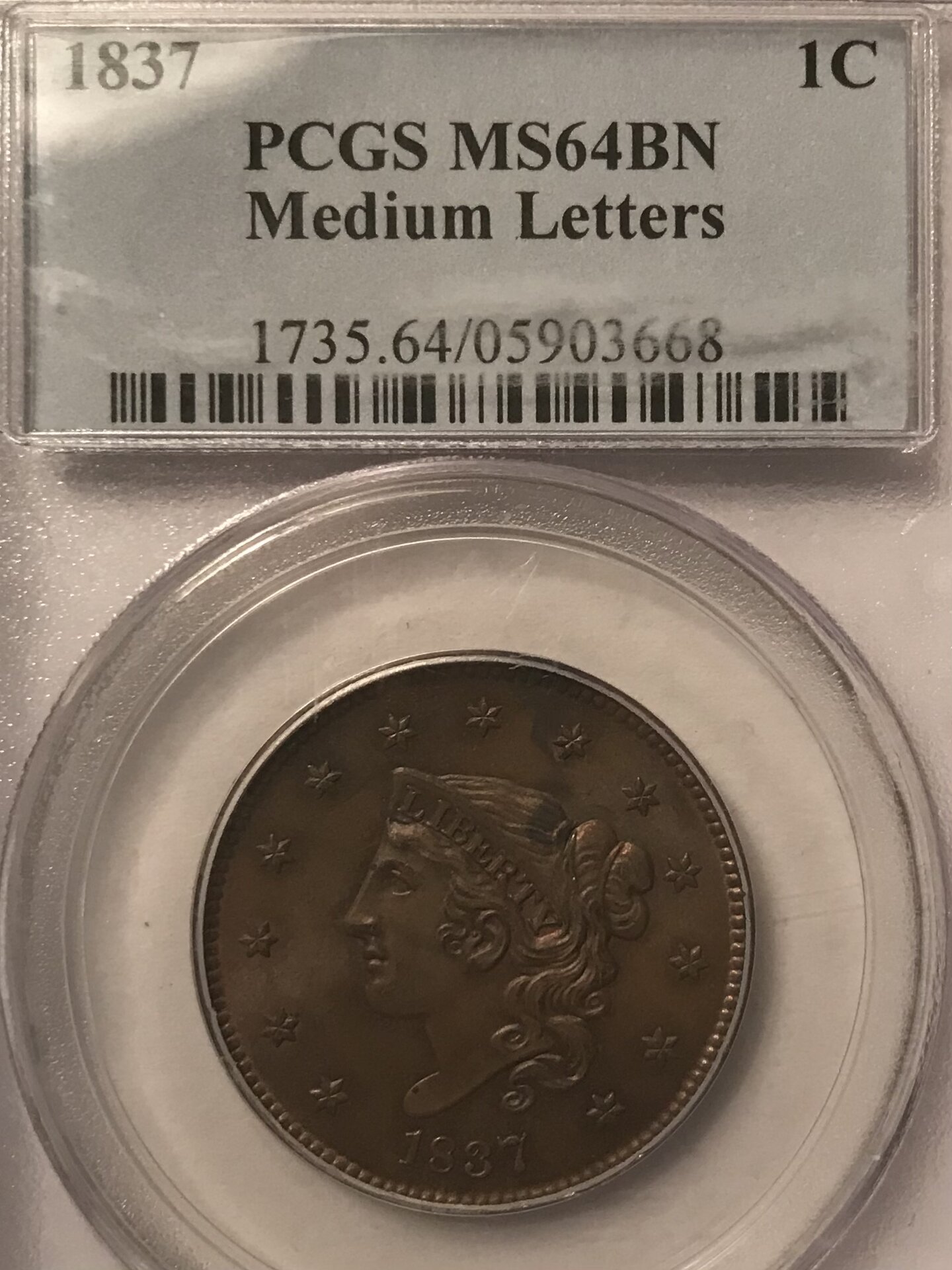 I compared your's to an MS67 that was sold last year at Great Collections. Your coin looks much nicer with a much better strike. The GC coin was an ex Pittman one which makes me wonder if the seemingly high grade had to do with the provenance. https://www.greatcollections.com/Co...m-Letters-N-8-NGC-MS-67-BN-Pittman-Collection