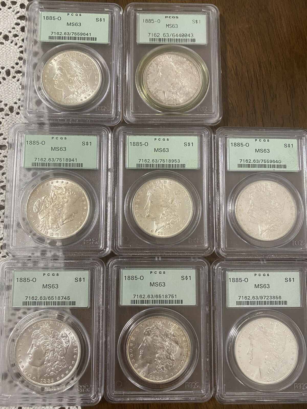 If I may...a fairly newbie not knowing all these posting do's/don'ts...gotta ask an off-subject question about one of the 1885-O Morgans in the photo, if you know: how did it end up near-inverted (upside-down) in that holder...? Have seen a lot of PCGS coins cocked similar, if not quite as much...but hardly any in NGC holders. Thanks.