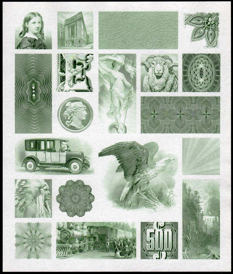 Great engravings! The top sheet is a page from "The Story of the American Bank Note Company" -- it was kind of a self-promotional book that ABNC did in 1959 and it has something like 16 pages of engraved vignettes, portraits and lathe work. https://www.papermoneyforum.com/pos...67328?highlight=intaglio books&pid=1325510403