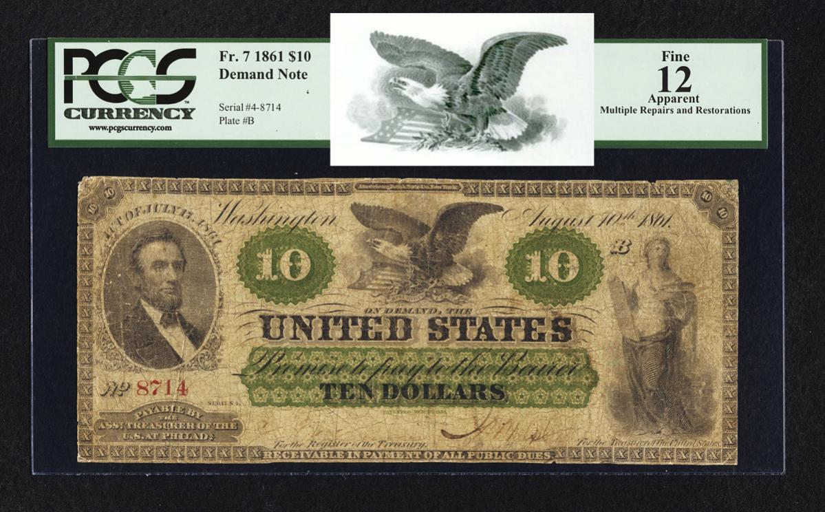 Well I don't really know that era so well, so I had to go and do some research! Off to Heritage Auction archives I went... It appears the eagle from your ABNCo vellum sheet was used on the Fr. 7 $10 1861 Demand Note! WoW! And right above the eagle on that note it shows ABNCo. along the top margin. Very cool! Thanks for the lesson. :smile