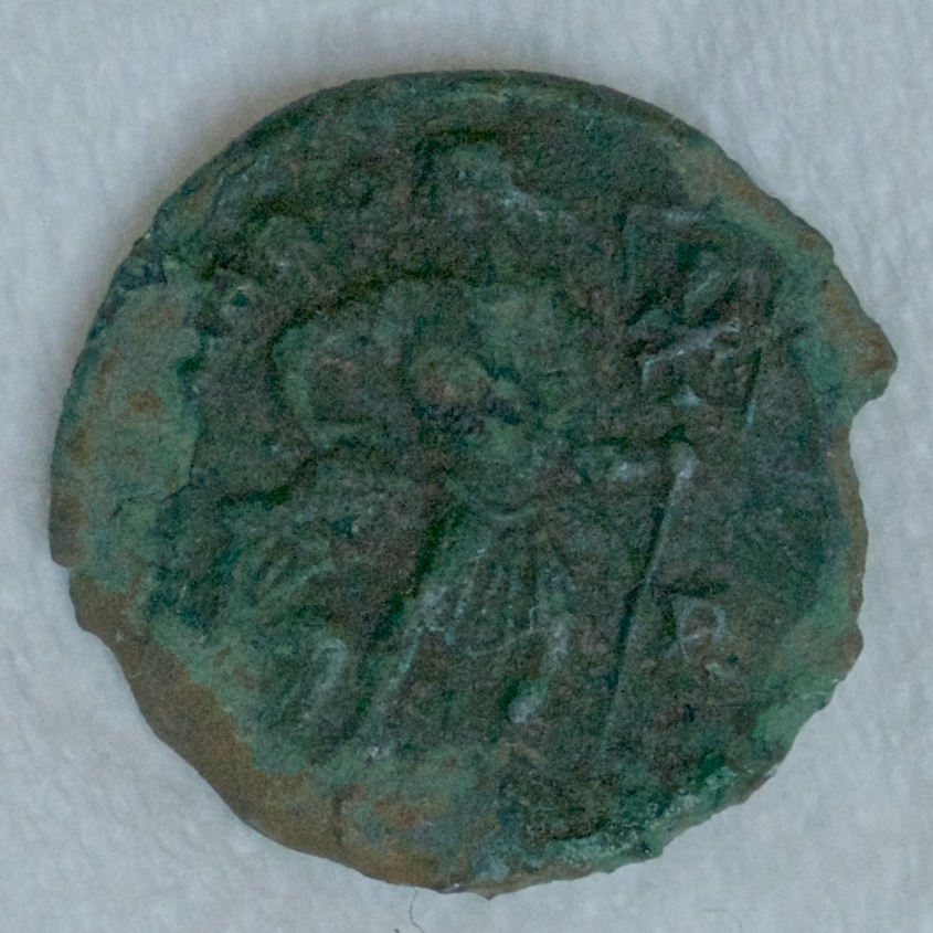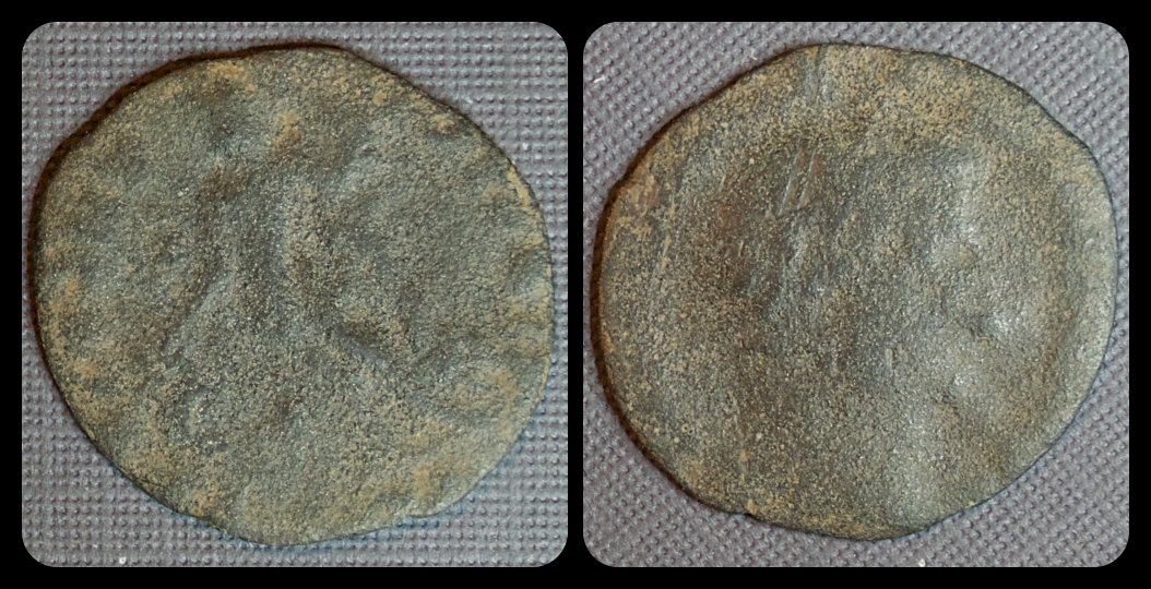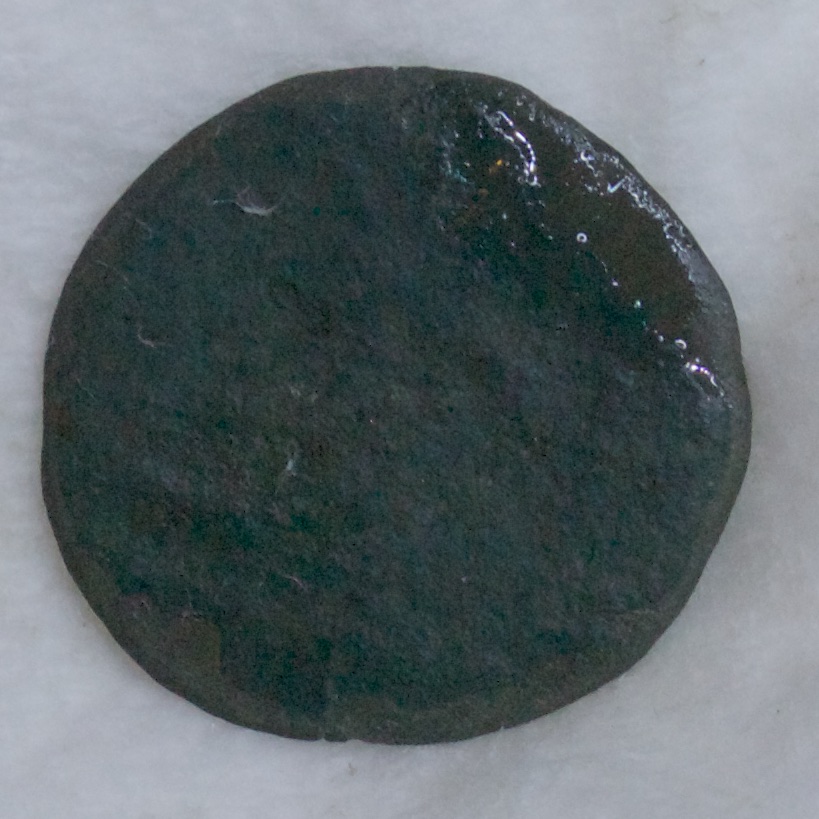 Had a good swab of the coins and now wondering when enough is enough. The thing with these coins, they don't come with a guide titled - 'This is what is it supposed to look like'. For a newbie that is a problem. So after 24 hours in a warm bath (that got cold) and a bit of a swab with a cotton bud (Q-Tip) this one looks like this. It weighs 2.26gms and has a diameter of 22.85mm and looks like this. I have a feeling it is a very worn something or other and, when the mud remnants are cleaned off, about done. Any thoughts? Does it need a longer soak? Any ideas what it may be? If I were to guess I'd say it was a figure with a spear and a head on the other side.