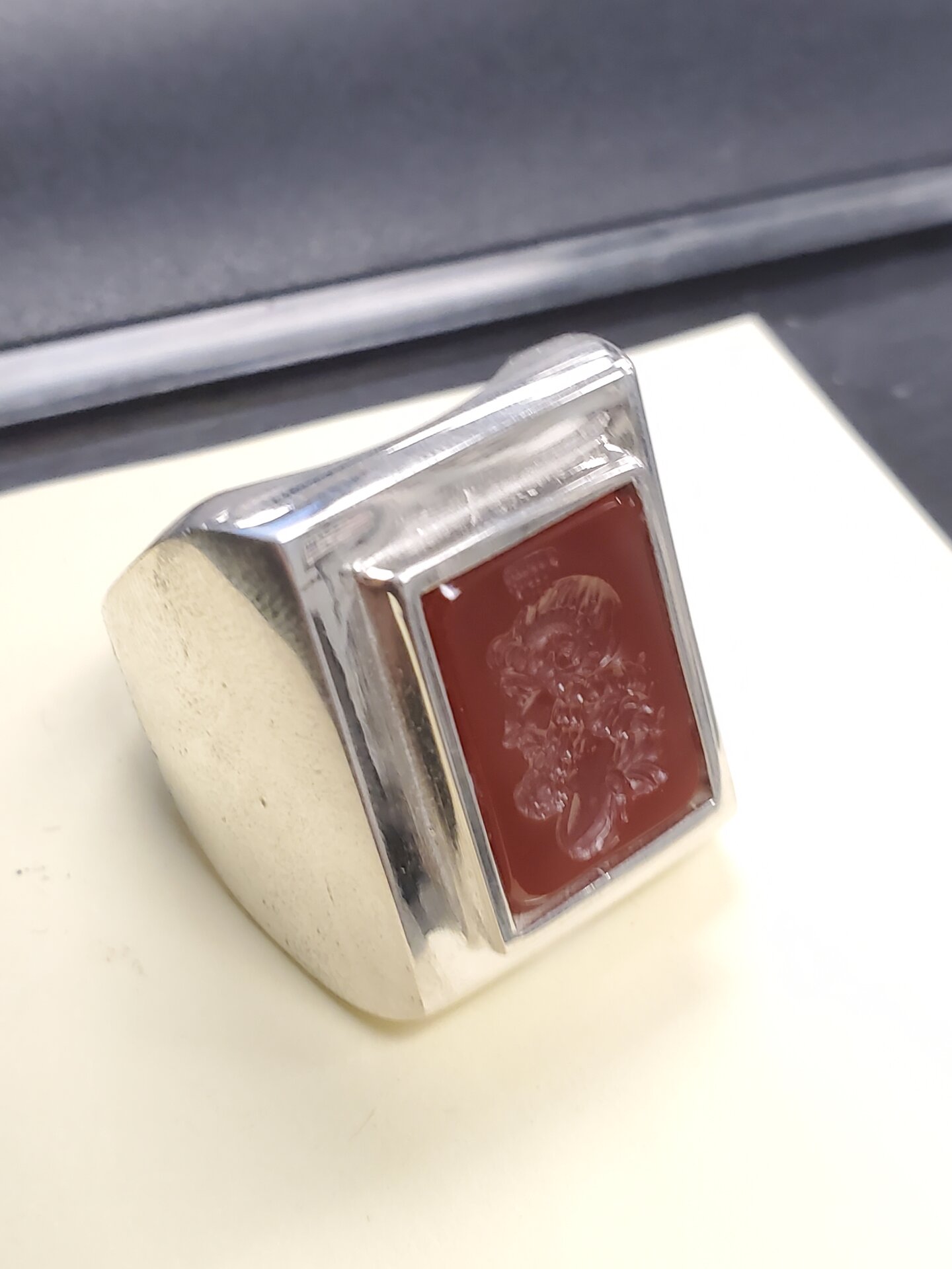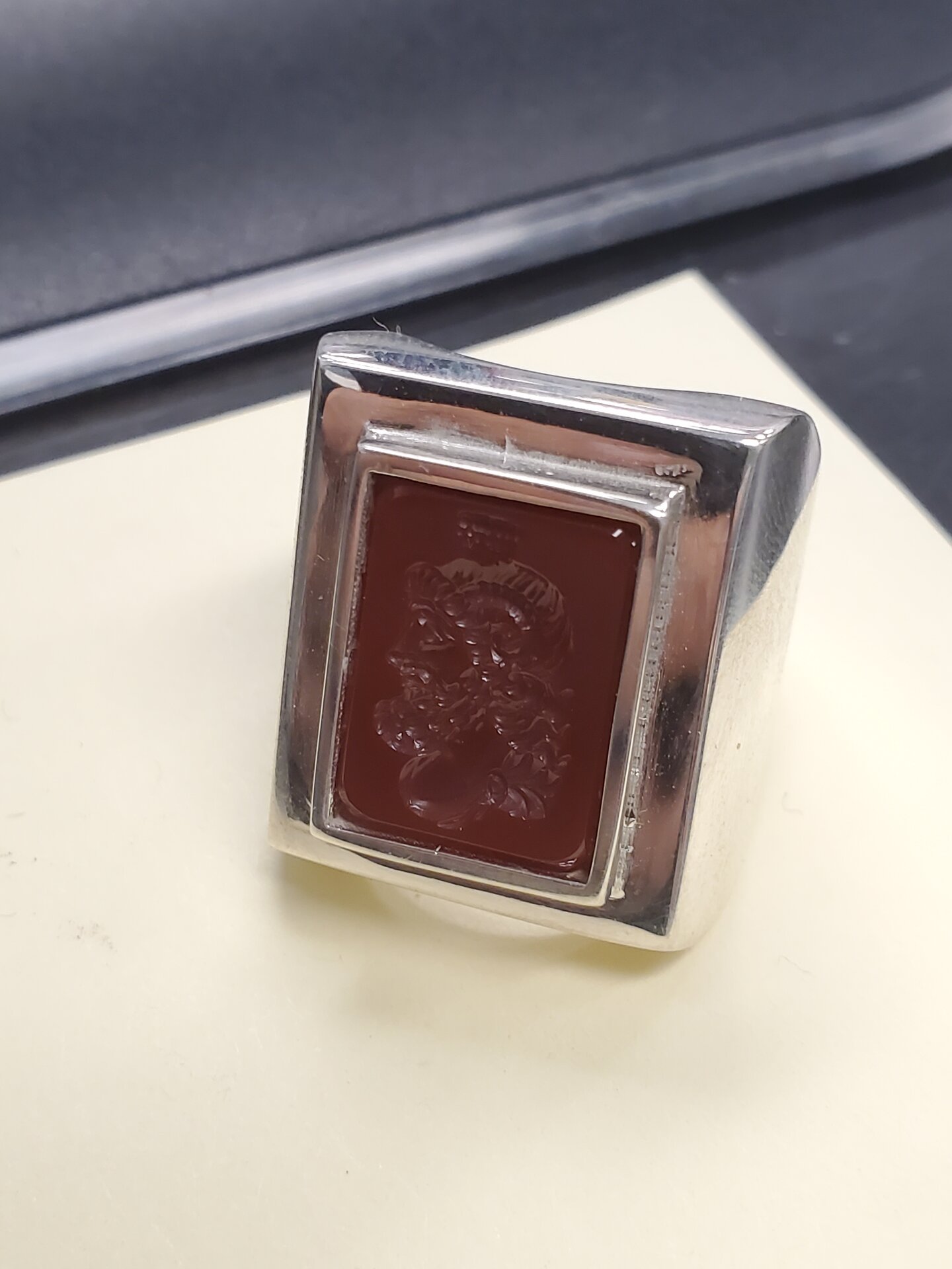 I know this part of the forum is dedicated mainly to our ancient coin collections, but got my birthday gift early this year. As it is heavily roman influenced I thought I would share. Got myself a silver ring with a Intaglio of Zeus Ammon.