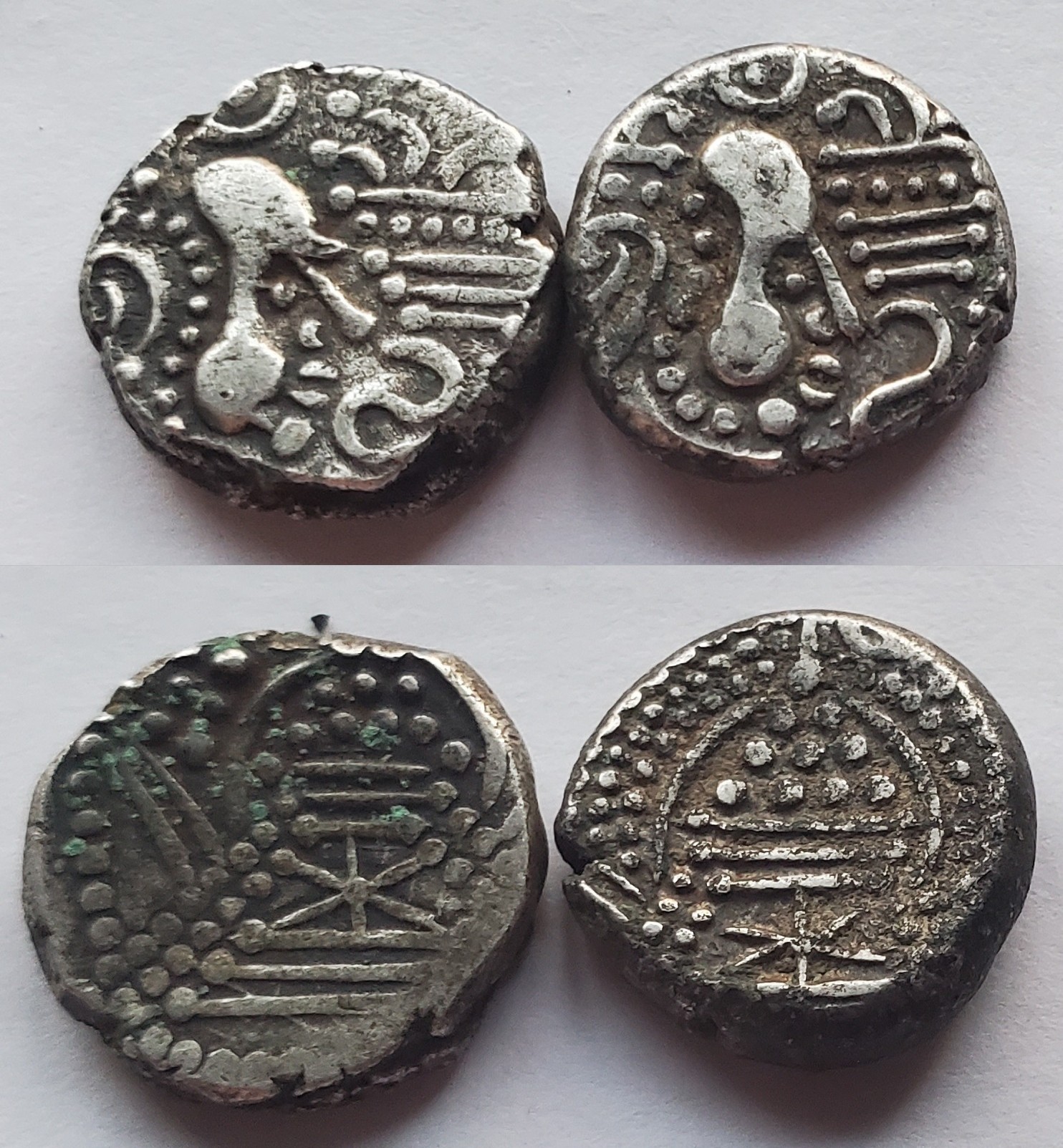 I believe I heard Deyell postulate that most/all of the Gadhaiya coinage was minted not by a government authority, but by a trade guild of Jain merchants. And while that makes sense in many ways, as someone who manages business requirements for IT for a living, the idea that they could be given a little artistic freedom but not completely lose the design within a decade, let alone 150-250 years, is beyond comprehension, unless of course there were strictly enforced rules about the creation of these coins.