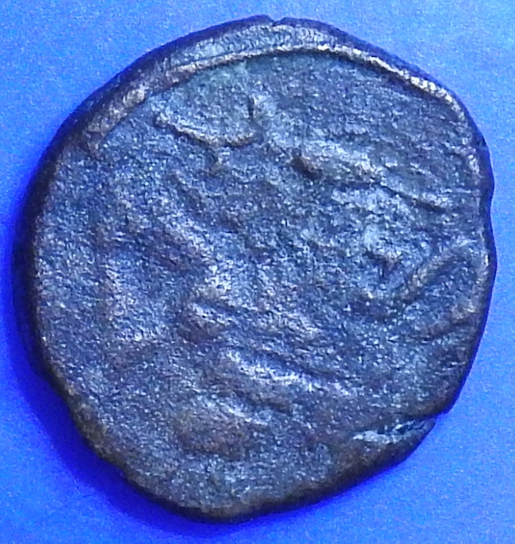 These Sicilian Roman overstrikes are quite interesting. I purchased this one a while back from an eBay seller who didn't quite know what to make of it. This one is a 69/6 sextans on top of a poseidon/trident type as well.