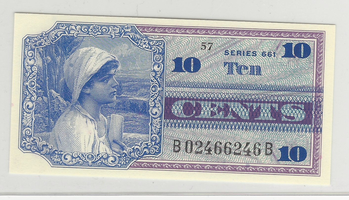 Thursday, I judged the Geography exhibits. Friday was a busy day for me, speaking and then serving on the Best of Show committee. (I exhibited a few times in the past, but not this year.) Once my work was done, I was free to walk the floor, to shop and visit. I spent almost an hour with Allan Berman. The TNA was very nice in find me some of their "Texas Navy" medallions. I also found a Texas Navy warrant for sale at good price. This one was filled out an cancelled. You don't see that often because Pres. Sam Houston reneged on them because he distrusted seamen. He hated the Navy for their successes for spoiling his plans. (But we in the Texas Maritime Regiment are steadfast in our loyalty.) I finally bought a coin for my avatar. The image at left came from a Tony Fein VCoins listing. I was researching the great fairs of Champagne for a Celator article. I passed on this and regretted it ever since. Soon after the article ran, I spoke at a conference in Calgary and learned from museum curator Geraldine Chimirri-Russell about the 3-D images on ancient Celtic coins. This coin, from 1000 years later, also aligns 3-D when viewed obliquely. I found one at Kenn Hollister's Moneta. A couple of years ago, six of us from the Texas State Guard were assigned on state active duty to work as clericals for the Domestic Operations task force. Our superiors were Army and Air National Guard. None of them knew about Military Payment Certificates. I was able to pick up some rags at local show, but this was my opportunity to find Premium Quality certified graded 66 and 67 examples. I got some high denomination early issues and some low denomination late issues. So, I have a pretty good run of examples now.