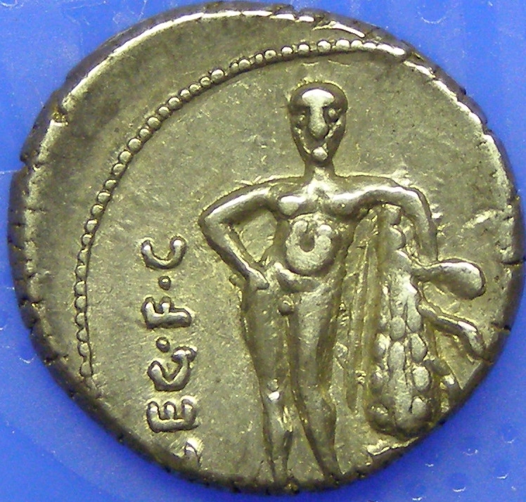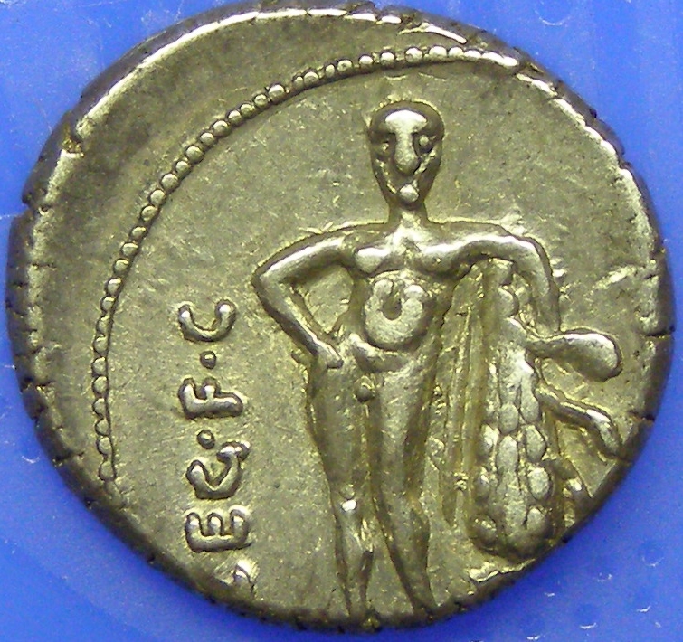 I passes on this one due to price a last weekend. The coin I bought instead. RR Denarius, C.ANTIVS.C.F.RESTIO; 47 BC Mint Rome; Cr 455/1a Obv - head of Restio, Trib 68 BC, right, RESTIO behind Rev - Hercules walking R with club and trophy When I took photos and looked at the coin in better light with magnification, I was not happy. I looked at lots of Restio coin and many had the same surface problems. I traded the coin back to the seller and handed over a few bucks for the "better" coin. I like the new one and did not like the old one. Seems like an ok deal to me. I wish the new one was centered as well as the old one.