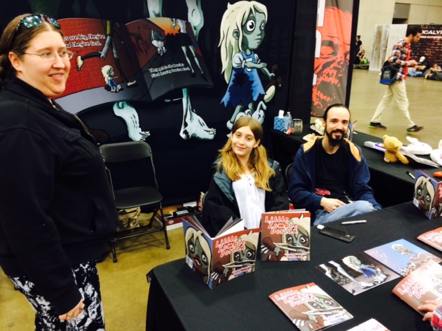 my last purchase at the ANA, some old beads. it was neat to see the '43 copper cent a 1913 V nickel and an 1804 dollar In the hall next to the ANA show was a much larger show.... the Walker Stalker convention. We need to sell our hobby better so we outdraw zombies. On a plus note, the dealer selling zombie silver rounds sold out! shirts for the event this is the author of the book Little Zombie Dorian, Nathaniel Summers, and his daughter Doriam. They were autographing books. You can buy one at - http://littlezombiebook.com/ there was one knitting zombie lover mam and daughter after buying tickets