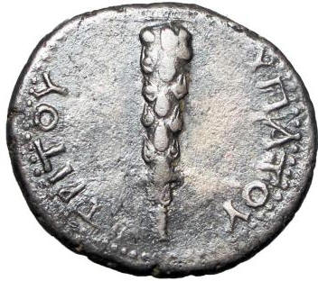 Sydenham (The Coinage of Caesarea in Cappadocia, p. 21) notes that the club first appeared on Caesarean coinage under Achelaus. In this case, it was symbolic of the mythological pedigree of the ruler as descendant of Temenos, son of Hercules. The club later came to be associated with Mt. Argaeus and appears atop the mountain on numerous issues from the city.