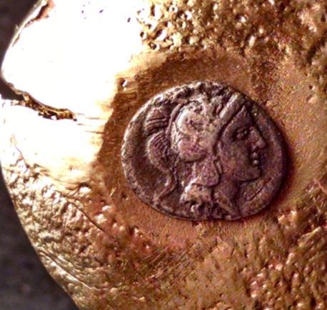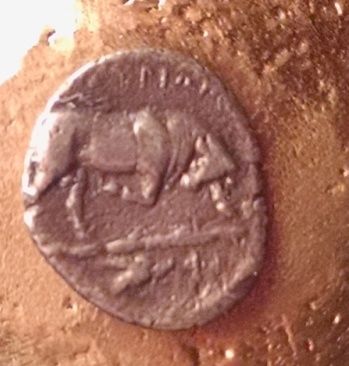Not much on FFFF's, a guy who fishes a lot you would think!! just one lonely little fish. Lucania, Thouriol..400-350 BC. Ar. Triabol Obv. Helmeted head of Athena right. Rev. Bull butting, Fish in Exe.( that's the best i got.) 10x12mm x 0.89g Yes that's fish at the bottom...