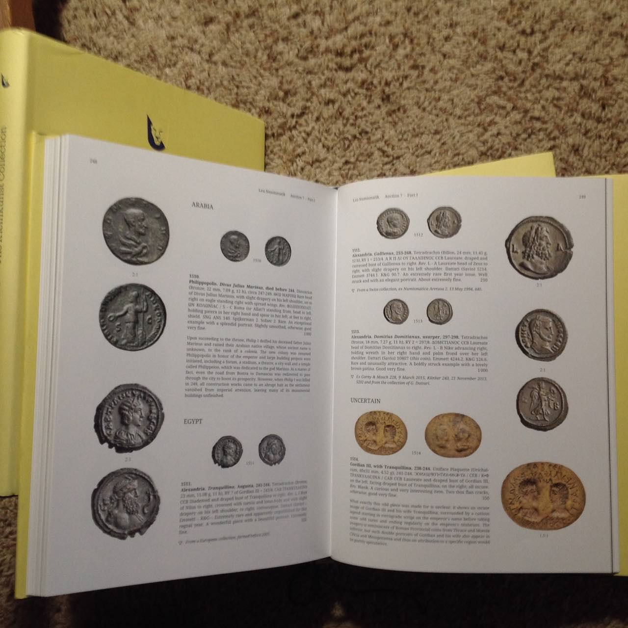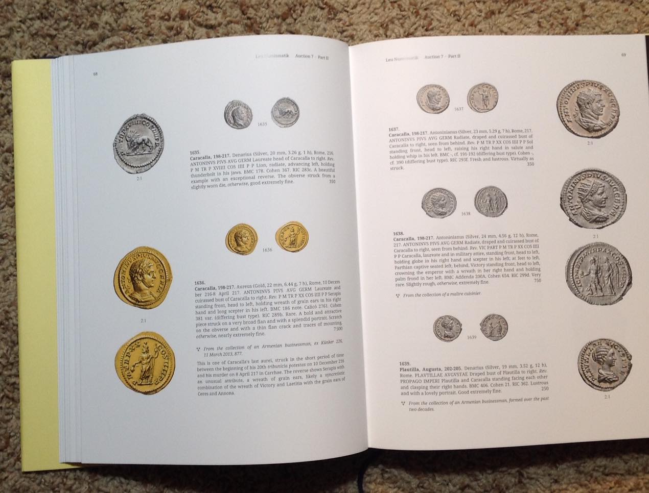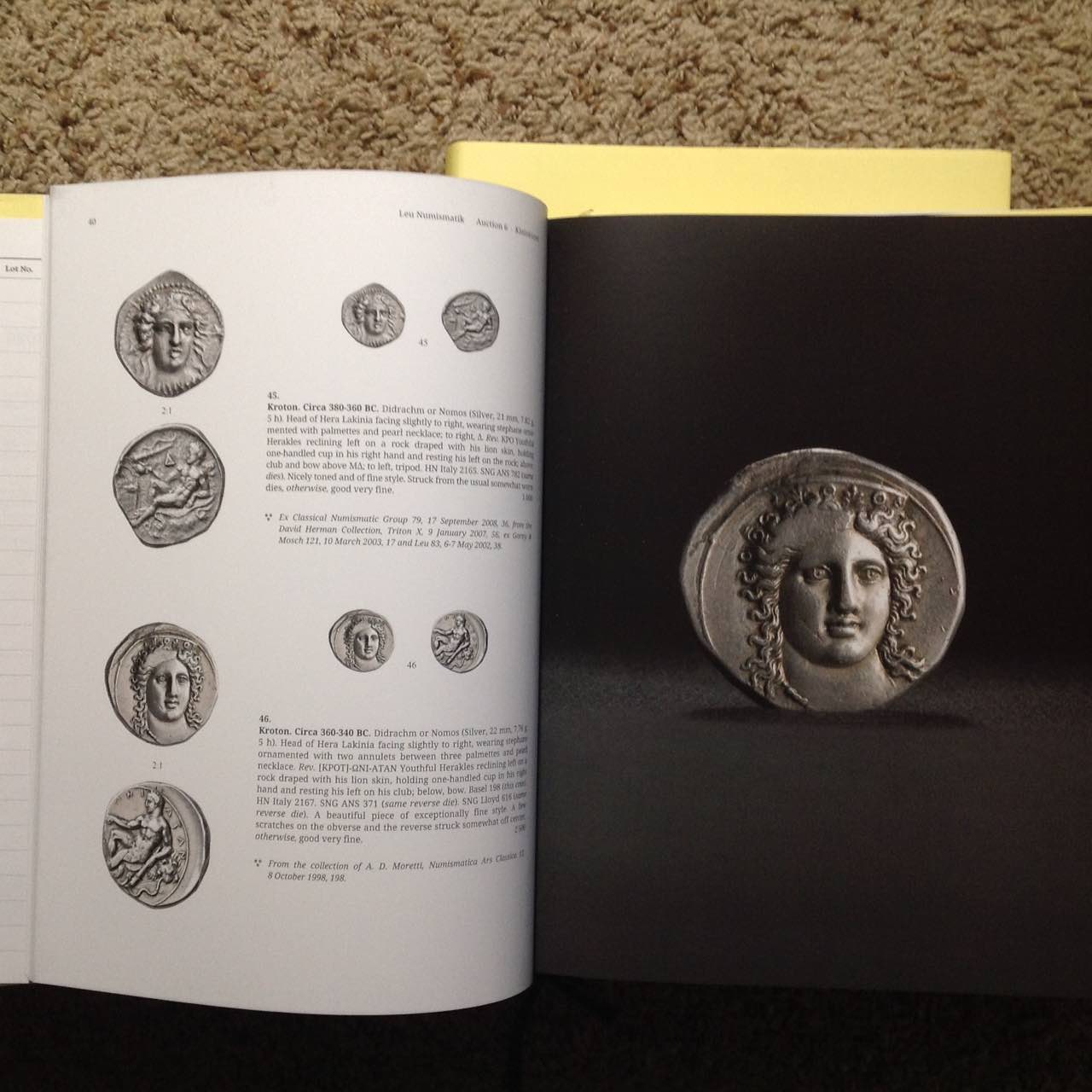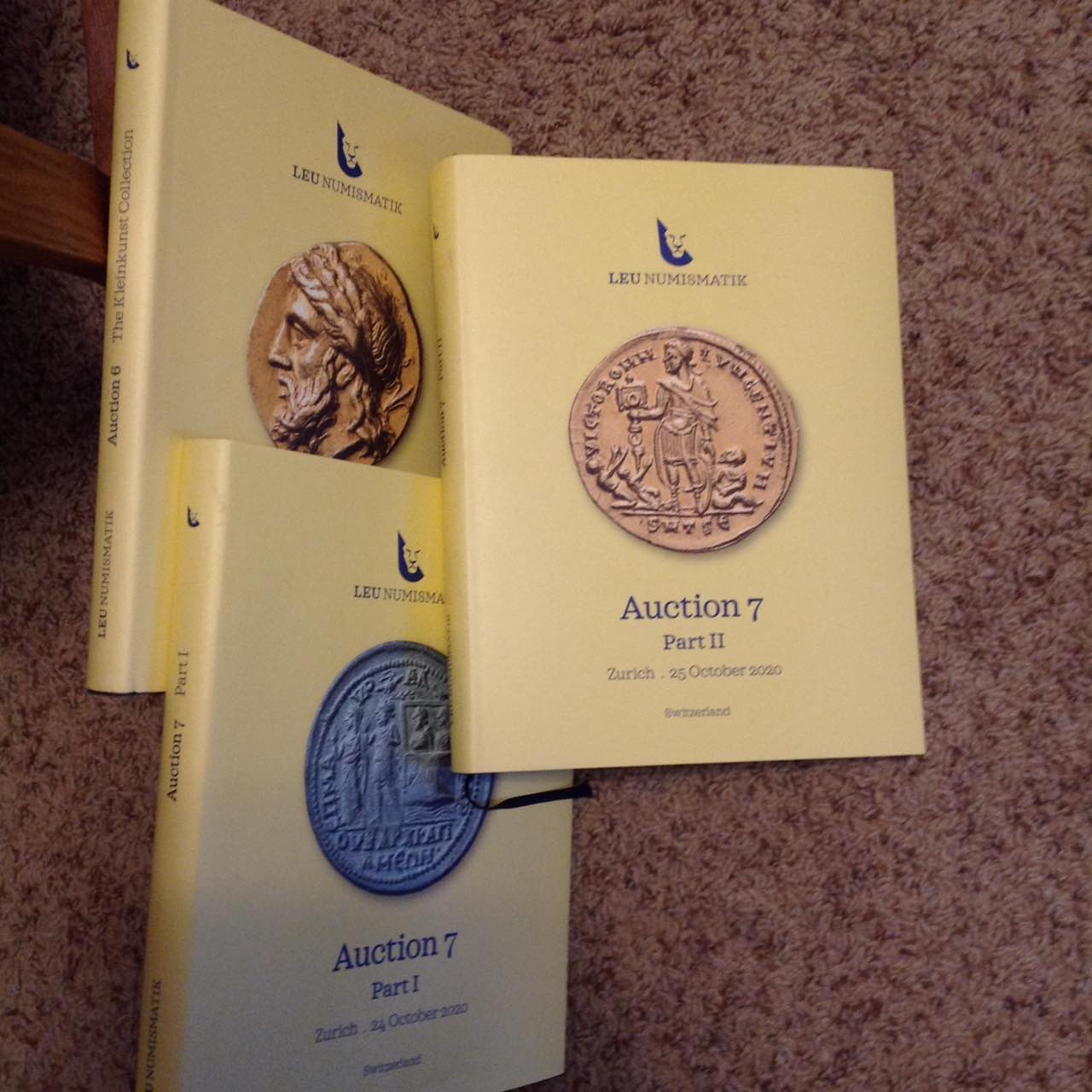 Leu Numismatik had a sale in three large hardcover catalogs in October, 2020. Together they weigh over 10 pounds and have over 800 pages of information about ancient coins with gorgeous photographs. 8 3/4" x 11 3/8". Massive! SOLD If you know ancient-coin catalogs, you know what a pleasure they can be. If you don't know the pleasures of paper catalogs with real heft and wonderful coins, this group of three might be a good place to start. For more ancient-coin literature, see: http://augustuscoins.com/numislit.html