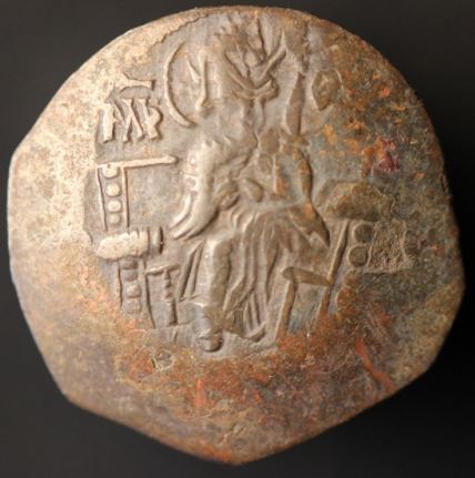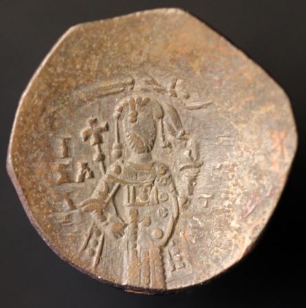There are some mighty fine coins being posted. here's a newp, from club night. Isaac ll Angews 1185- 1195 AD. Ae, testarteron. Obv. Virgin standing facing. Rev. Isaac ll standing facing, holding cruciform scepter. 20mm x 2.18g. Cup coin. Very interesting fellow, ruled twice, second time blind for a year, 1194-95.