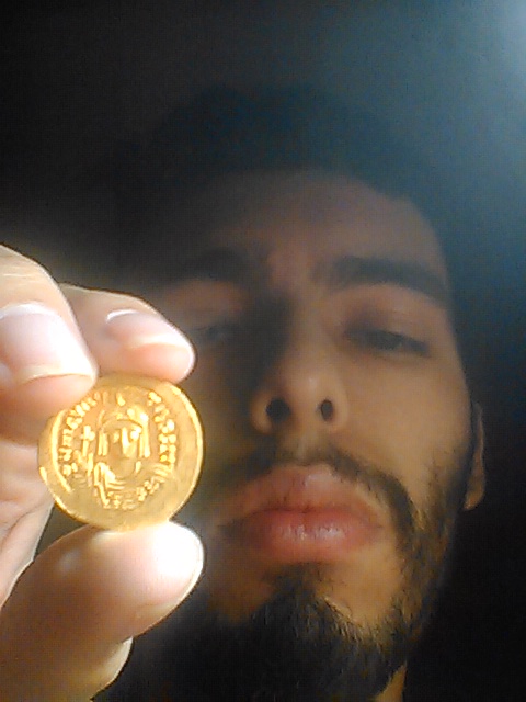 A recent shot of myself holding one of my gold coins (sorry for the quality, my phone doesnt have the best forward camera for self shots):