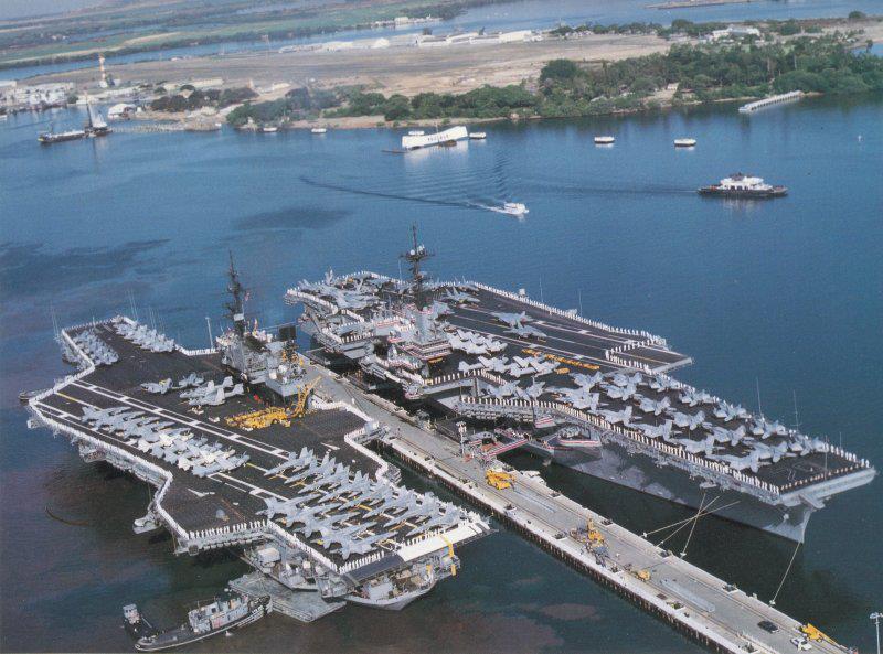 BTW, I'm one of those white figures on the ship to the right, somewhere between forward and mid-ship starboard side. I remember we had to man the rails into port for this exact photo opportunity. Took a couple hours if I remember.