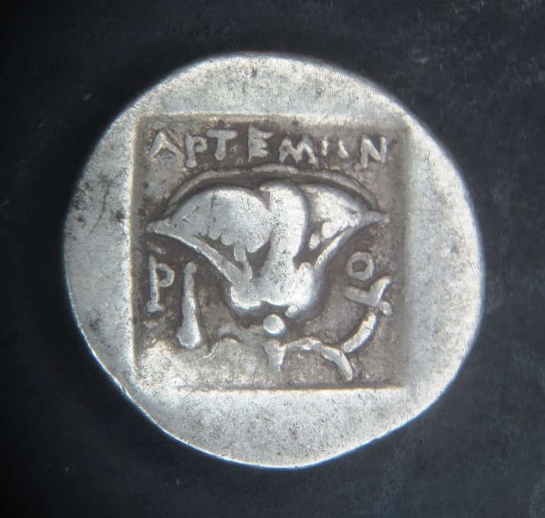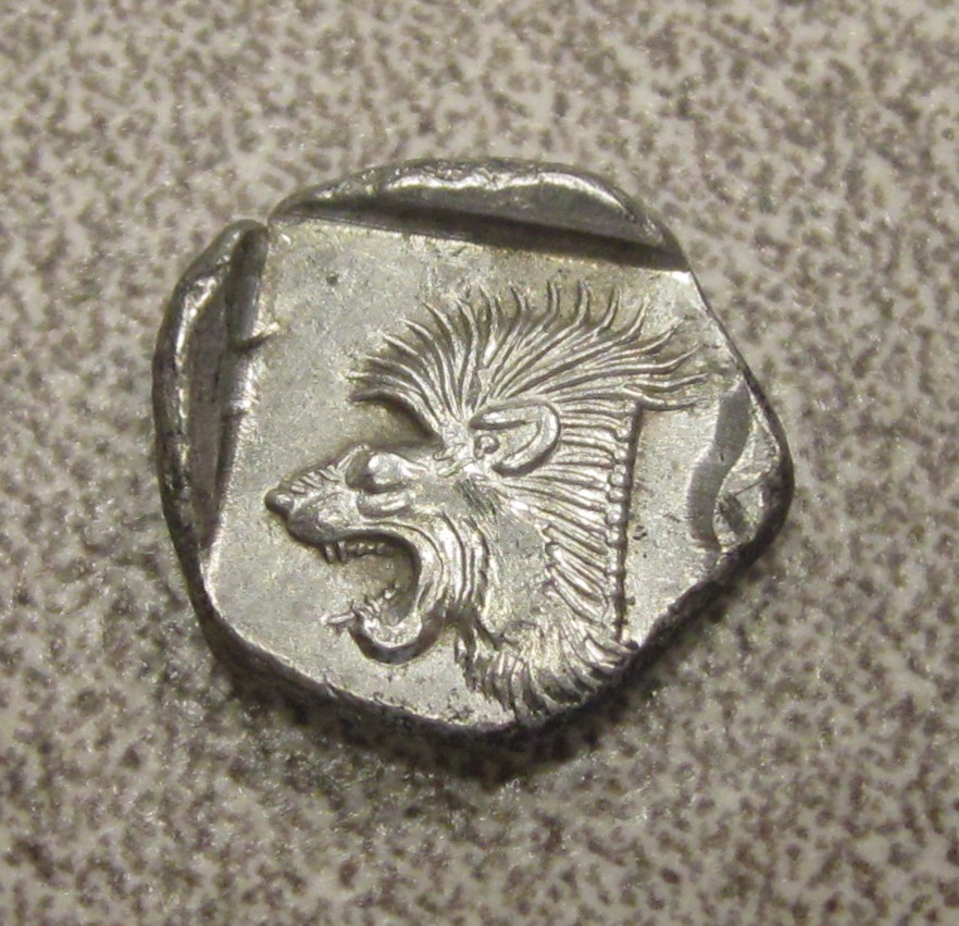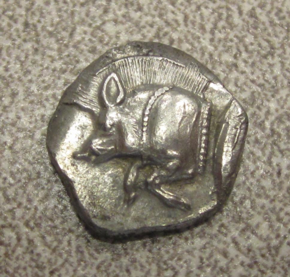 These two new coins bring my collection up to 10 coins MYSIA. Kyzikos. AR Obol ca. 450-400 B.C. 0.85 grams, 11 mm Obv: Forepart of razor-back boar left, tunny upward behind Rev: Head of roaring lion facing left within incuse square Grade: gEF fully struck, Almost mint on a porosity-free, choice flan. Other: Similar to Sear 3848 but w/o K; Von Fritze II 9; SNG France 361-72; SNG von Aulock 1213; SNG Kayhan 54. From Barry Murphy May 2013.