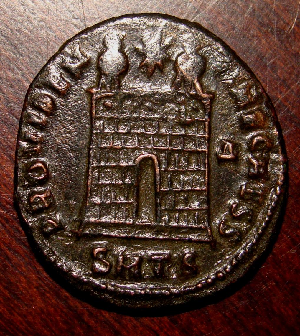 Since delving into the Ancient Coin niche of the hobby I've been pleasantly surprised by many things. Right now I'm focusing on Roman Imperials, mostly LRBs, and I'm really shocked by how many really nice coins are available for bargain prices. I recently bought some unattributed coins for less than $20 bucks apiece. I keep asking myself "How can there be so many really beautiful coins, many almost 2000 years old, for such bargain basement prices?" I suppose, like anything else, it's a function of supply and demand. I surmise there are relatively few collectors of ancient coins, and there are large numbers available due to the fact that these coins were minted in large numbers. The advent and proliferation of metal detecting technology for the masses has also undoubtedly led to many hoards that have been discovered in the last 50 years. Granted some of the coins in this category aren't in the best condition. But they're still easily attributable. The dealer I purchase from gives me a discount since they're unattributed. According to him, once he's taken the time and trouble to attribute a coin, he'll double the price on these cheap ones. For me conducting the attribution is half the fun. I've gravitated towards wildwinds ancient website as my primary reference. I think this guy is giving me good deals in order to cultivate a relationship, he knows that I may start off with less expensive coins, but that eventually as I again experience I'll step up in price...and he's right. Anyhoo...here's my latest batch of 15 dollar "bargain LRBs." A Maximianus I, three Constantines (appropriate to have the first Christian Emperor for Easter Sunday), and a Probus. Crossed another milestone...my first camp gate!