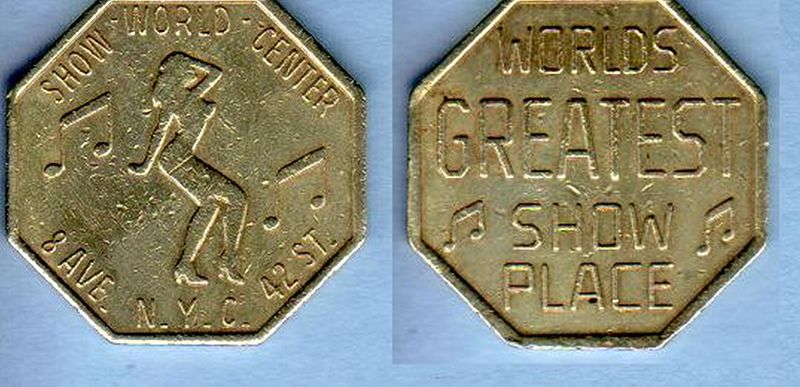 Many years ago I lived on W43 St in Manhattan, right around the corner from the famous (or infamous) Show World - a peep show palace with "live nude girls". They used tokens to operate their peep booths. Every day I would see tokens from there laying in the street, discarded by suburban husbands who didn't want wifey to know of their shenanigans. There were small brass ones, worth a quarter and larger steel or nickle ones worth a buck. Enterprising kids from the neighborhood would scoop them up and sell them at a discounts to patrons entering the "theater".