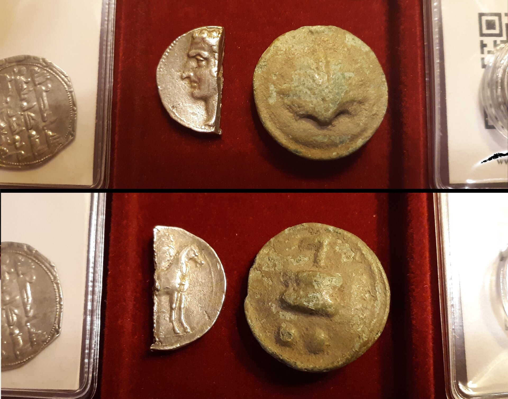 How about 2 coins -- one of each -- a 1/2 and a 2? To top it off, both temp. 2nd Punic War... Punic Spain, the Barcids, temp. Second Punic War. Halved AR Shekel or "Drachm/Denarius" (4.09g). Cathago Nova (?), circa 237-209 BCE (temp. Hannibal, 218-206?). One might speculate that after Hannibal was expelled from Iberia, this Shekel was subjected to a "currency conversion," interestingly, cut to substantially more than "half," more like ~62% of a 6.65g original Shekel, assuming the missing half was of equal thickness/density. Latin Colonies & Allies of Rome, temp. Second Punic War. Northern Apulia, Luceria AE Aes Grave Biunx (cast, 17.86g, 26mm [9mm thick], 3h). Struck circa 217-212. Shell / Astralagus [knucklebone]. L and two pellets (mark of value). I'm sure others here know better than I do where the Aes Grave and other coinage cast or struck at Luceria circulated. My understanding is that a major Roman mint was located there during the 2nd Punic war. Were these coins cast at Luceria for local coinage, for use by Romans, or both?