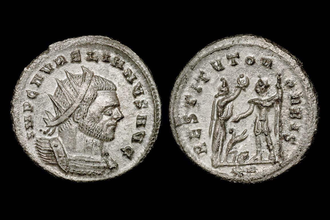 Ive owned two and this is the one ive kept. Nothing special. Aurelian (270 - 275 A.D.) Æ Antoninianus O: IMP C AVRELIANVS AVG, Radiate and cuirassed bust right. R: ORIENS AVG , Sol advancing left, raising right hand, globe in left, flanked by two captives at feet, txxt in ex Ticinum Mint 2nd Emission. 3rd Officina 3.81g RIC 151
